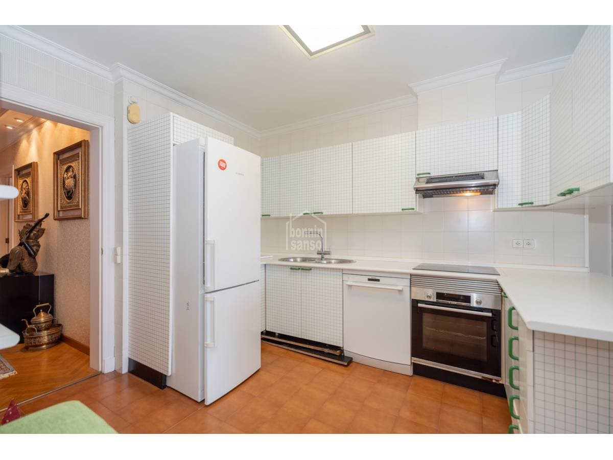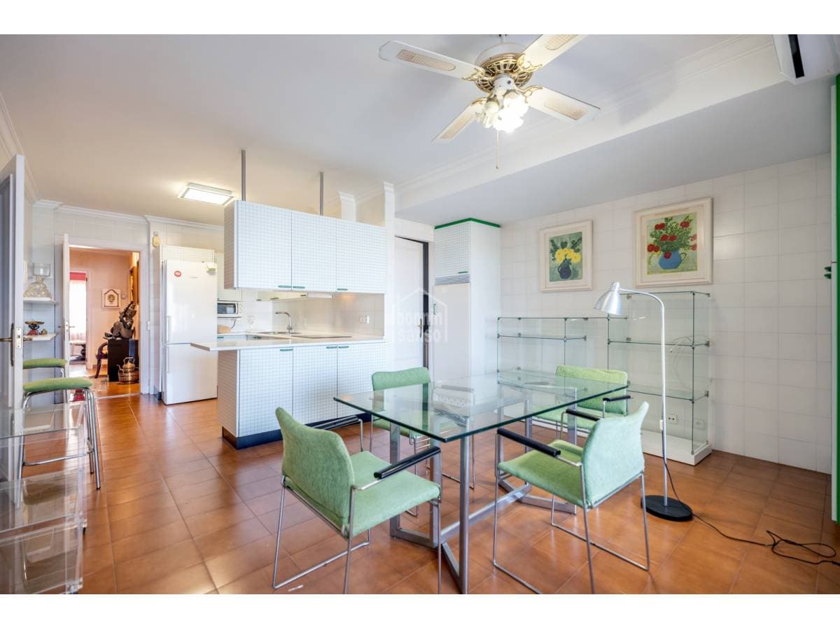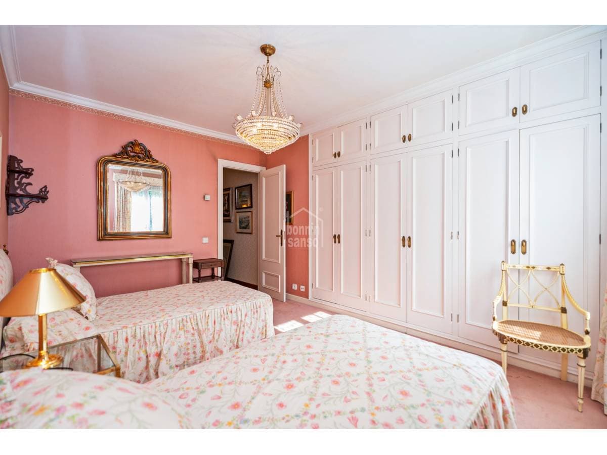 This exclusive first-floor apartment is a gem overlooking the port of Mahón, where space and elegance come together in a setting of the highest quality. Located in a meticulously maintained building with a pleasant community of owners, it offers a perfect connection between the town and the port, with privileged views that make every day a unique experience. Upon entering, a generous hall welcomes you into a space designed for comfort and sophistication. The large living-dining room, bathed in natural light, opens onto a wonderful terrace with panoramic views of the port. The kitchen is both functional and spacious, featuring a breakfast area and laundry room—ideal for everyday living as well as special occasions. The apartment's layout ensures privacy and convenience, with a large master suite with a private bathroom, a second bedroom also with an en-suite bathroom, and a third versatile space that can serve as an office or guest bedroom. A fourth bedroom and an additional shared bathroom complete the home, making it practical for any lifestyle. Comfort extends to every detail, with underfloor heating providing warmth during the cooler months. In the communal areas, the swimming pool invites rest and relaxation, while two private parking spaces add an extra touch of convenience. A high-end home in a privileged location, offering spectacular views and an ambiance that makes it a true oasis of tranquility and style.
