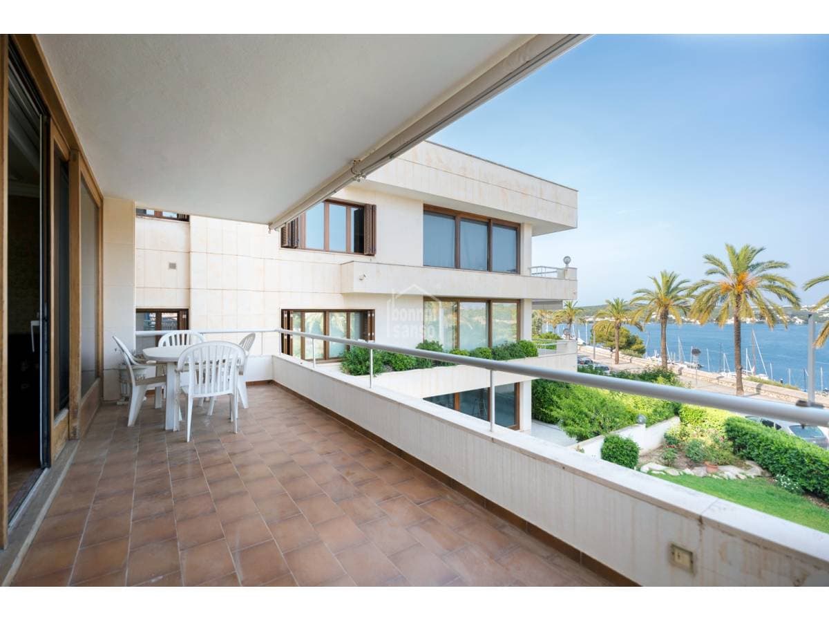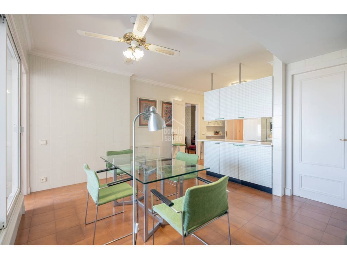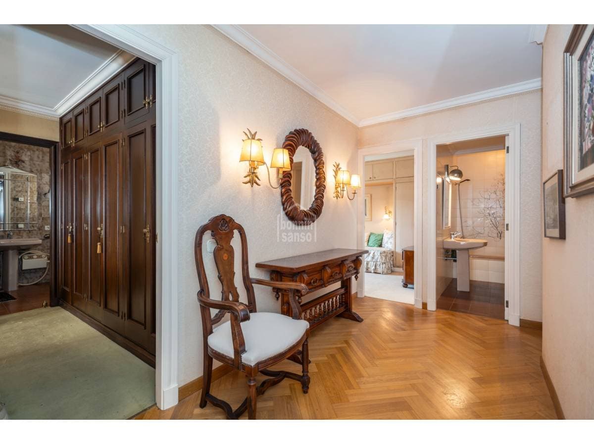This exclusive first-floor apartment is a gem overlooking the port of Mahón, where space and elegance come together in a setting of the highest quality. Located in a meticulously maintained building with a pleasant community of owners, it offers a perfect connection between the town and the port, with privileged views that make every day a unique experience. Upon entering, a generous hall welcomes you into a space designed for comfort and sophistication. The large living-dining room, bathed in natural light, opens onto a wonderful terrace with panoramic views of the port. The kitchen is both functional and spacious, featuring a breakfast area and laundry room—ideal for everyday living as well as special occasions. The apartment's layout ensures privacy and convenience, with a large master suite with a private bathroom, a second bedroom also with an en-suite bathroom, and a third versatile space that can serve as an office or guest bedroom. A fourth bedroom and an additional shared bathroom complete the home, making it practical for any lifestyle. Comfort extends to every detail, with underfloor heating providing warmth during the cooler months. In the communal areas, the swimming pool invites rest and relaxation, while two private parking spaces add an extra touch of convenience. A high-end home in a privileged location, offering spectacular views and an ambiance that makes it a true oasis of tranquility and style.