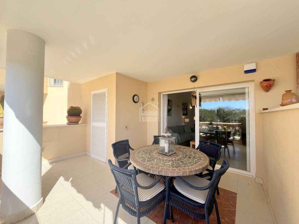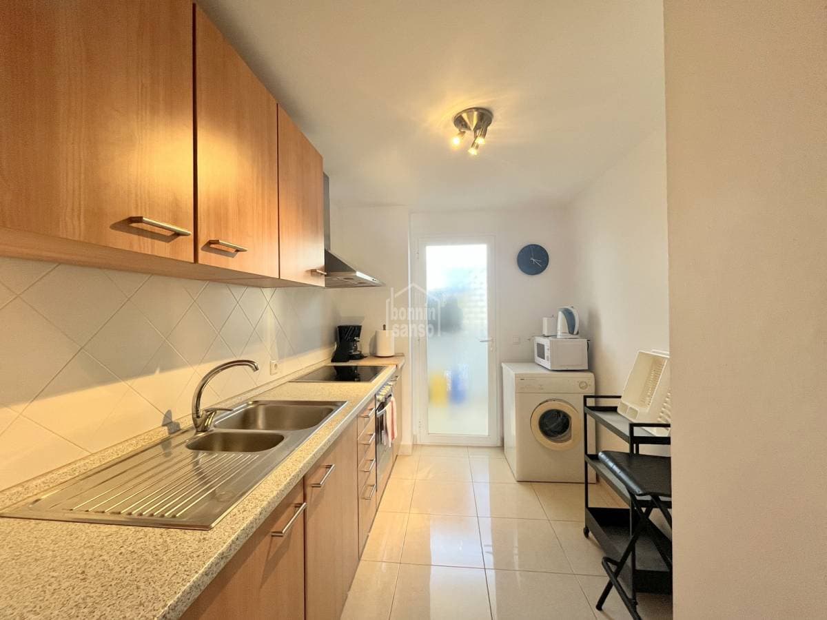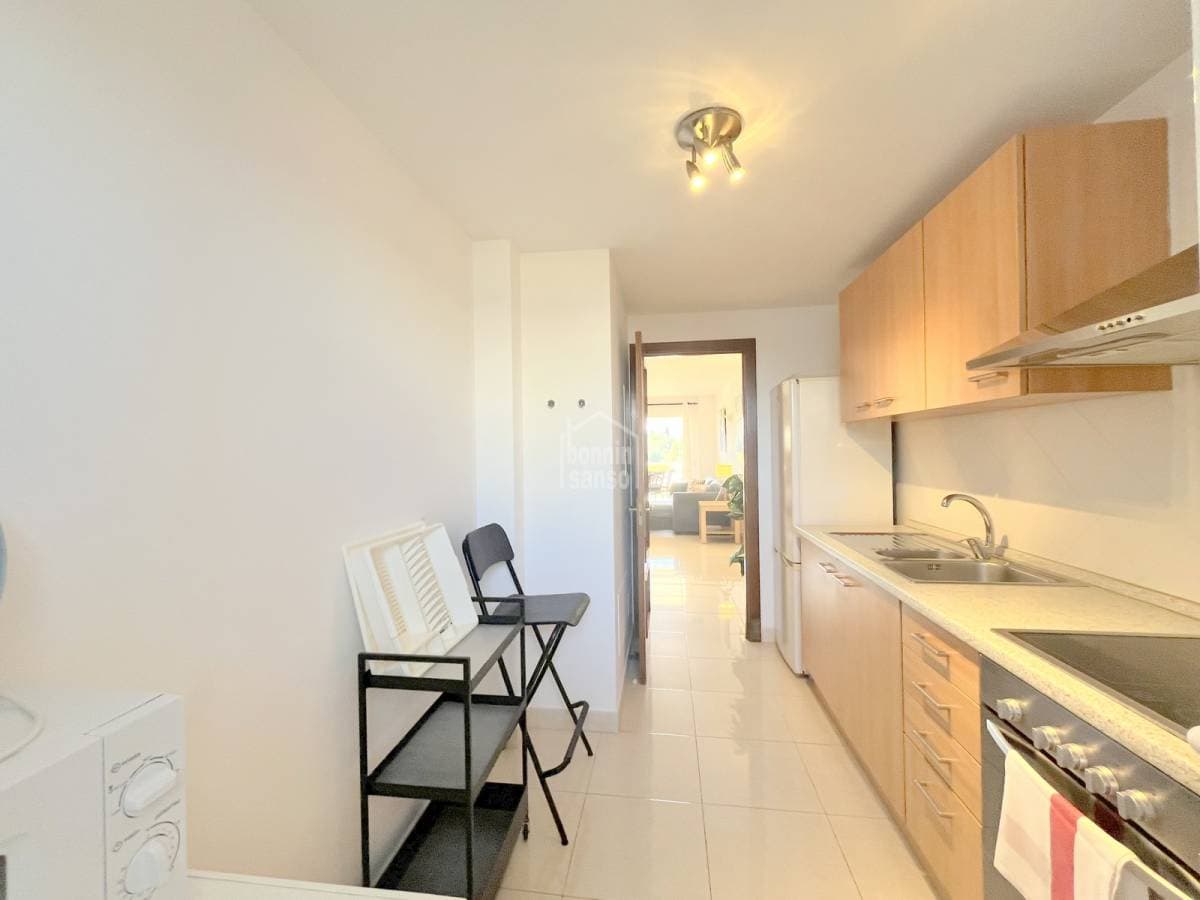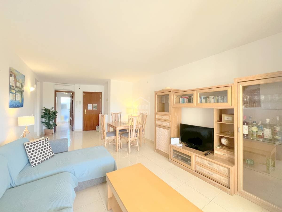 Immaculate and sunny two bedroom apartment located in Cala Bona, with a tourist rental licence, just 50 metres from the beach and the seafront promenade, and only a five-minute walk from the harbour, where you will find a wide selection of restaurants, cafés and all essential services. The property offers approximately 100 m² of built area, including a 17 m² terrace with pleasant views of the mountains and the communal swimming pool, ideal for enjoying the Mediterranean climate all year round. The apartment is distributed into two spacious double bedrooms, two bathrooms (one of them en suite), a large and very bright living-dining room, a fully equipped independent kitchen and a practical laundry area. The property also includes a parking space and a storage room in the underground garage, providing additional convenience and storage space. The apartment features air conditioning throughout and double-glazed Climalit windows. It is sold fully furnished and equipped, ready to move into or to start generating rental income thanks to its tourist licence.