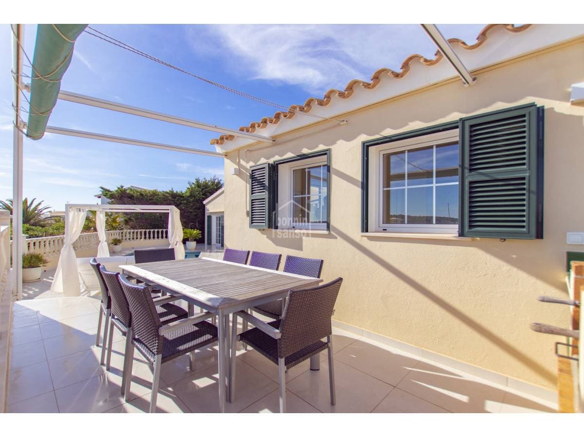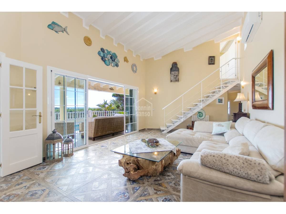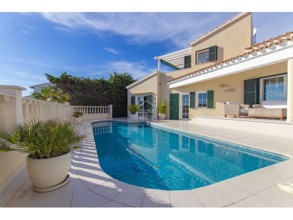 Villa with privileged views over the port of Mahon. Experience a unique lifestyle that blends privacy, comfort, and generous spaces, all meticulously renovated with the finest quality materials. The heart of the house, the spacious living-dining room, is bathed in natural light through large windows and high ceilings, offering breathtaking views. From here, access the private covered terrace. The exquisite gardens, the refreshing pool, and the cosy porch create a perfect environment to enjoy the outdoors and organise unforgettable dinners al fresco. With four spacious double bedrooms, each designed as a sanctuary for rest, you will find the privacy you deserve. The elegant bathrooms, imbued with sophistication, offer adjustable chromatic lighting to suit your mood, along with radiant floors heating, for an unparalleled experience. The laundry room, adding practicality to your daily routine, adds to the well-thought-out functionality of this residence. The kitchen with dinner area is equipped with state-of-the-art appliances, merges functionality and aesthetics in a harmonious space. The strategic location of this property makes it a perfect retreat all year round, with double glazing and air conditioning; you will feel comfortable and welcomed in any season. Do not miss the opportunity to call this villa your home. Live the experience of privacy, design, and unparalleled views in a property that encapsulates the charm of life in Menorca.