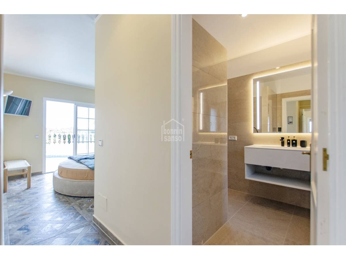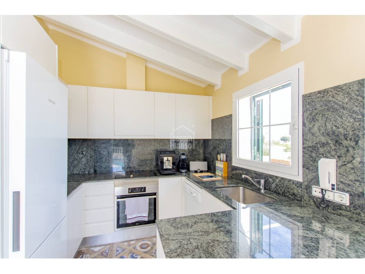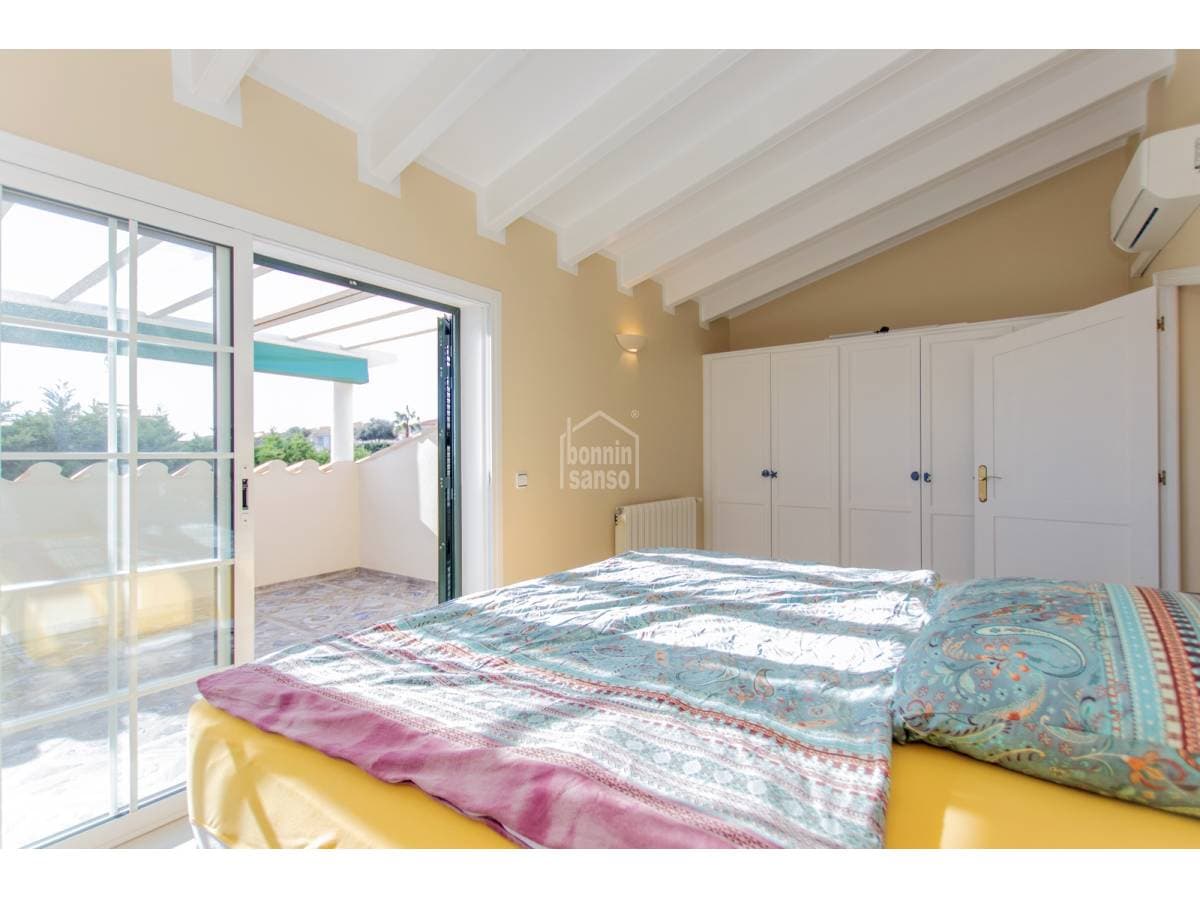Villa with privileged views over the port of Mahon. Experience a unique lifestyle that blends privacy, comfort, and generous spaces, all meticulously renovated with the finest quality materials. The heart of the house, the spacious living-dining room, is bathed in natural light through large windows and high ceilings, offering breathtaking views. From here, access the private covered terrace. The exquisite gardens, the refreshing pool, and the cosy porch create a perfect environment to enjoy the outdoors and organise unforgettable dinners al fresco. With four spacious double bedrooms, each designed as a sanctuary for rest, you will find the privacy you deserve. The elegant bathrooms, imbued with sophistication, offer adjustable chromatic lighting to suit your mood, along with radiant floors heating, for an unparalleled experience. The laundry room, adding practicality to your daily routine, adds to the well-thought-out functionality of this residence. The kitchen with dinner area is equipped with state-of-the-art appliances, merges functionality and aesthetics in a harmonious space. The strategic location of this property makes it a perfect retreat all year round, with double glazing and air conditioning; you will feel comfortable and welcomed in any season. Do not miss the opportunity to call this villa your home. Live the experience of privacy, design, and unparalleled views in a property that encapsulates the charm of life in Menorca.