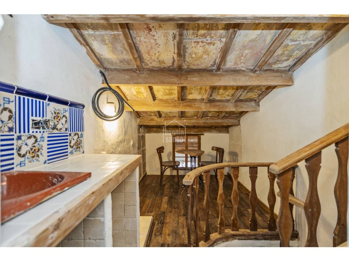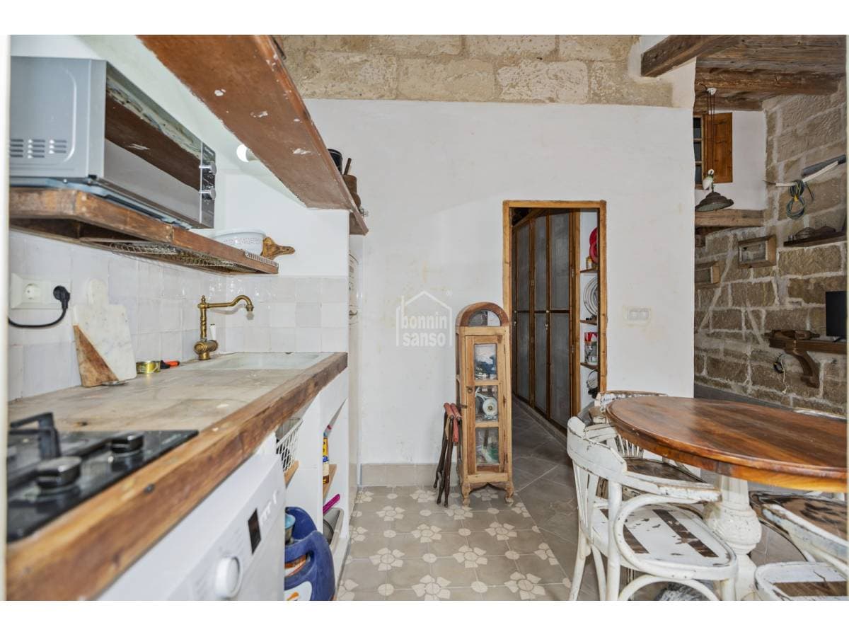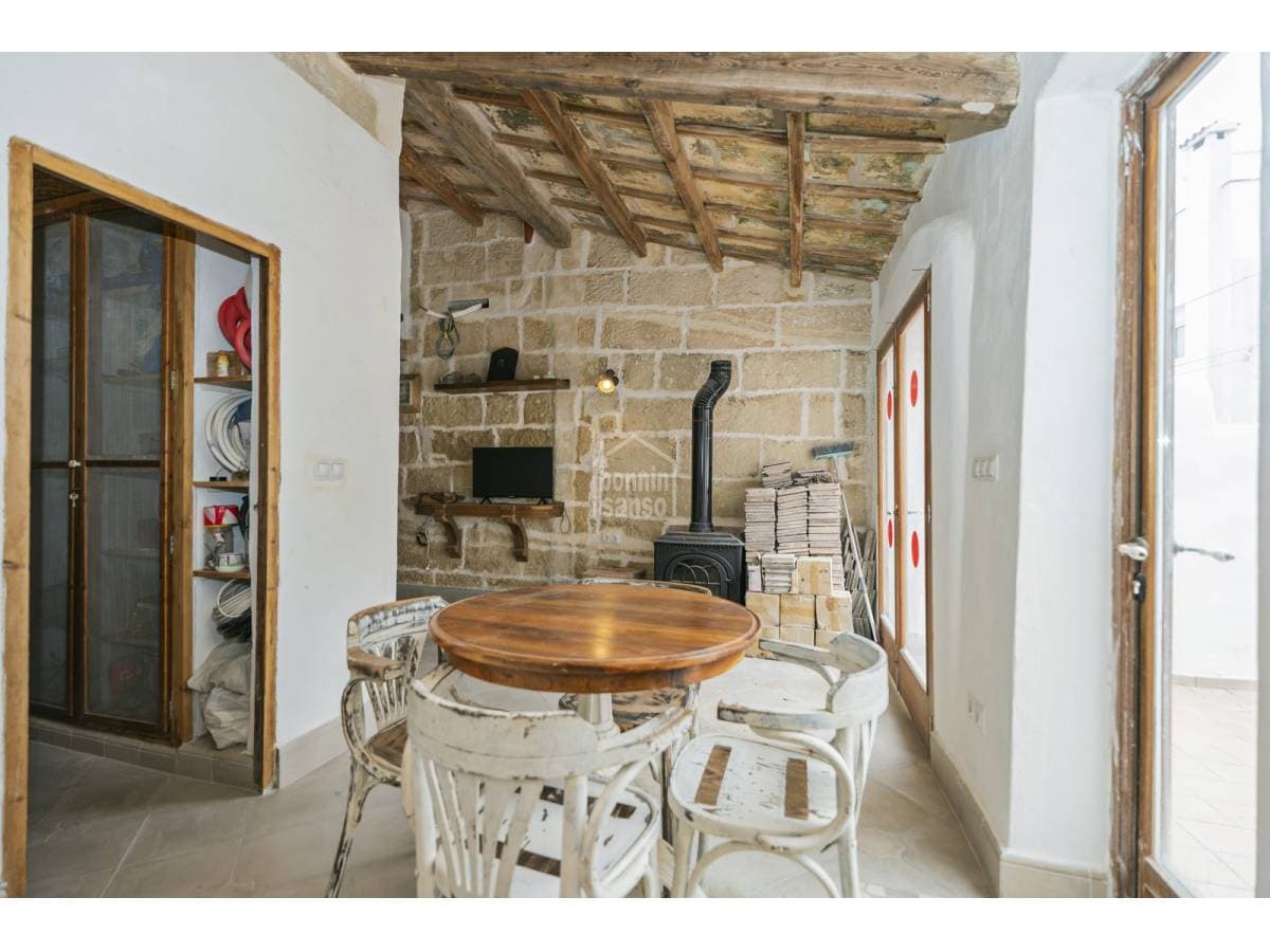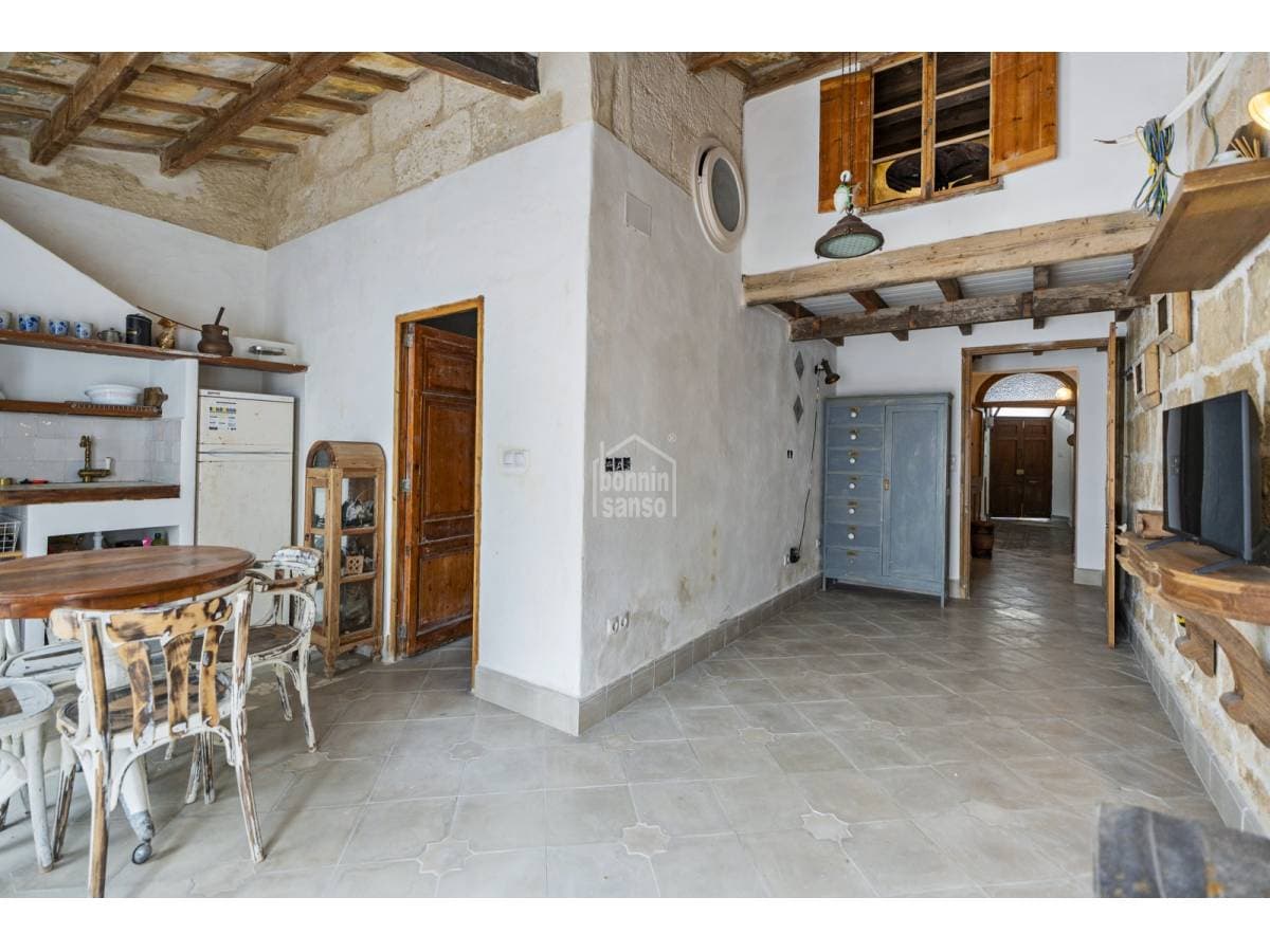 This charming village house beautifully combines history and authenticity with outstanding potential. It has been partially restored with great sensitivity and excellent taste, carefully preserving original materials that lend the property a timeless character. Hydraulic tile floors, exposed wooden beams, whitewashed walls and sandstone masonry are just some of the features that give this home its distinctive personality. The house is currently arranged as three independent areas, two of which benefit from their own kitchen, bathroom and bedroom. This versatile layout offers multiple possibilities: a main residence with separate guest accommodation, housing for professionals on temporary relocation, or an attractive income-generating investment. It should be noted that some renovation work remains to be completed, presenting future owners with the opportunity to personalise and finish the property according to their own style and requirements. Its location is another key advantage. Situated just minutes from Mahón's town centre and its harbour, the property enjoys the tranquillity of a residential setting while offering the convenience of all amenities within easy reach.