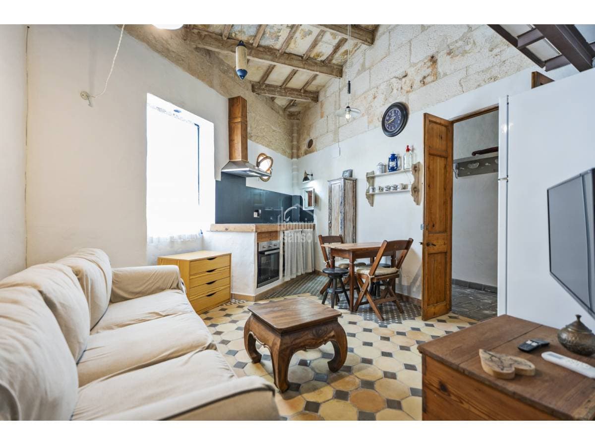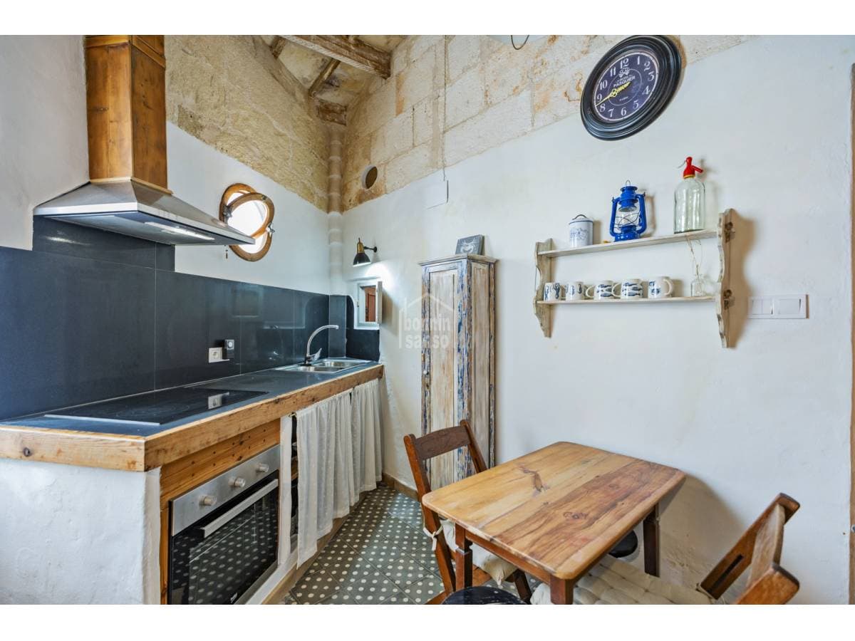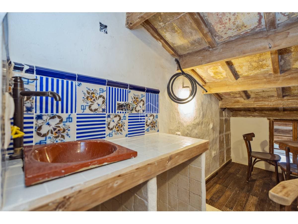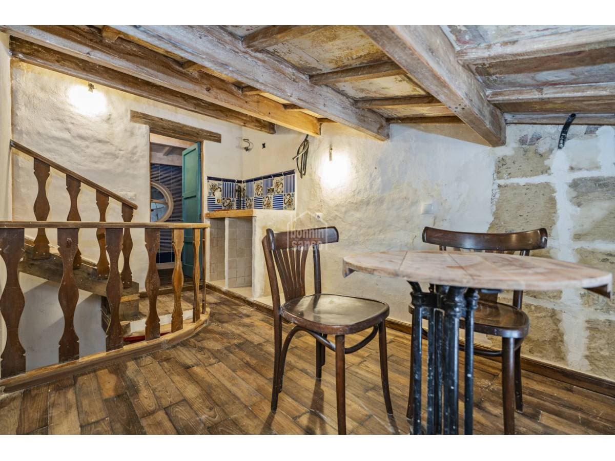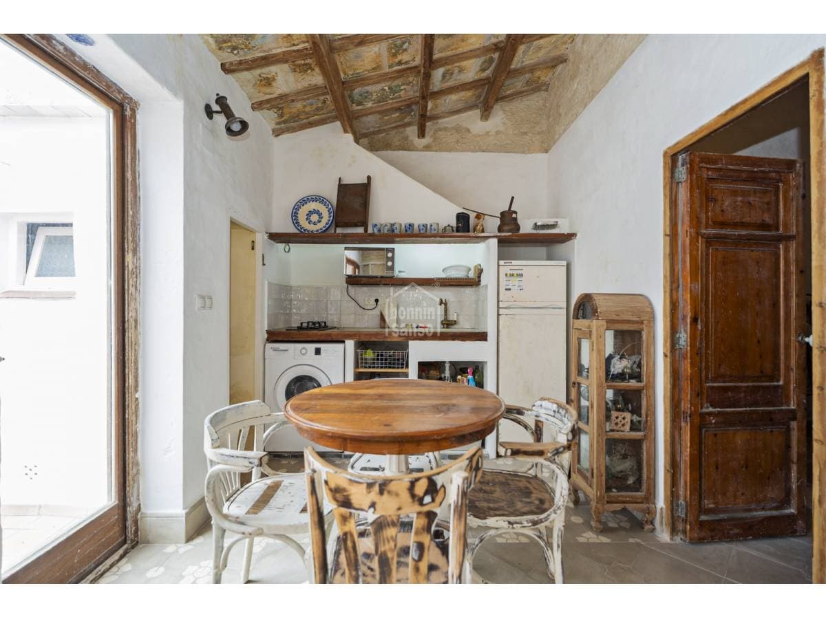 This charming village house beautifully combines history and authenticity with outstanding potential. It has been partially restored with great sensitivity and excellent taste, carefully preserving original materials that lend the property a timeless character. Hydraulic tile floors, exposed wooden beams, whitewashed walls and sandstone masonry are just some of the features that give this home its distinctive personality. The house is currently arranged as three independent areas, two of which benefit from their own kitchen, bathroom and bedroom. This versatile layout offers multiple possibilities: a main residence with separate guest accommodation, housing for professionals on temporary relocation, or an attractive income-generating investment. It should be noted that some renovation work remains to be completed, presenting future owners with the opportunity to personalise and finish the property according to their own style and requirements. Its location is another key advantage. Situated just minutes from Mahón's town centre and its harbour, the property enjoys the tranquillity of a residential setting while offering the convenience of all amenities within easy reach.