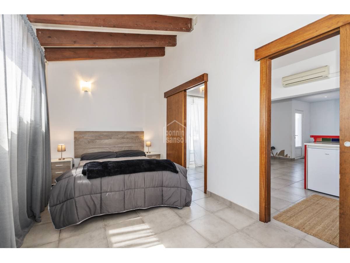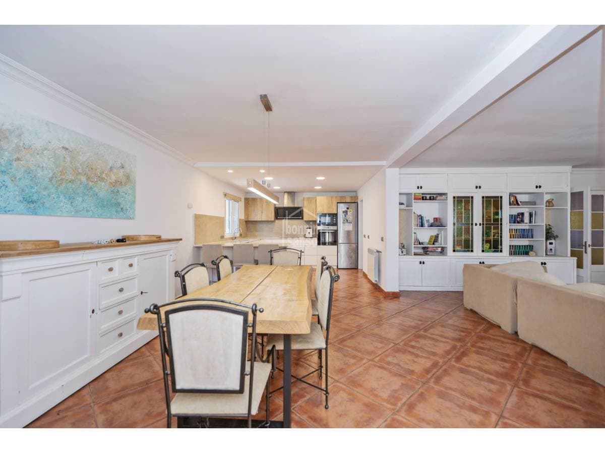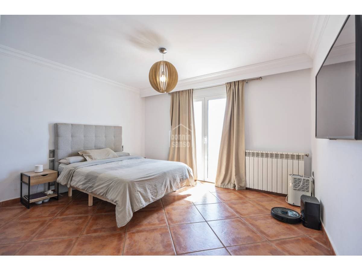 Located in a residential area of Cala'n Blanes, this villa stands out for its generous proportions, practical layout and the independence between its living spaces. It is an ideal option both as a year-round residence and as a holiday home. The main floor, offering over 200 sqm of built area, features four double bedrooms and three bathrooms, one of them en suite to the master bedroom. The property also boasts a spacious open-plan living and dining area with a fully integrated kitchen, providing direct access to the terrace and pool area. An external staircase leads to the upper floor, where an independent apartment with private access is located. It comprises a living room with open-plan kitchen, a full bathroom, a double bedroom and two terraces. The basement level includes a large garage of approximately 100 sqm, with space for several vehicles and additional storage. A modern aerothermal system and solar panels have recently been installed to enhance energy efficiency. The plot borders a green area and is situated approximately 200 metres from the sea. A versatile and well-located property offering multiple usage possibilities.