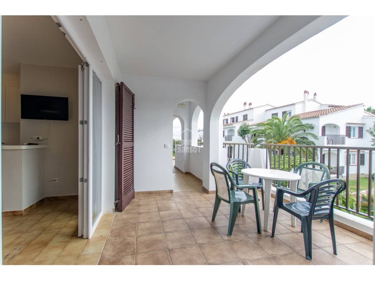 Tourist apartment located in an attractive holiday complex in Cala en Porter, on the south coast of Menorca, just a few minutes from the beach and surrounded by all amenities. The property, situated on the first floor and with an approximate surface area of 50 m², comprises two bedrooms, a full bathroom, a living-dining room with an integrated kitchen, and a pleasant 19 m² terrace. The complex, one of the most complete in the area, features a large communal swimming pool, landscaped gardens, a children's area, reception for guest check-ins and check-outs, as well as a bar and restaurant. For more information or to arrange a viewing, please do not hesitate to contact us.