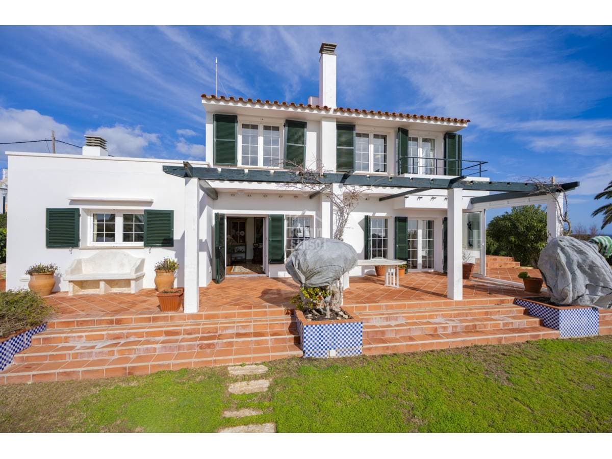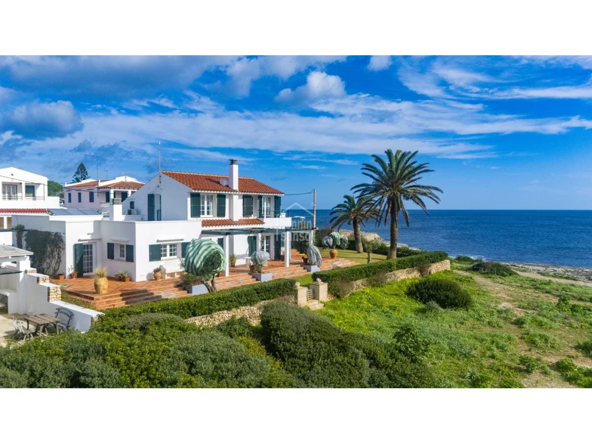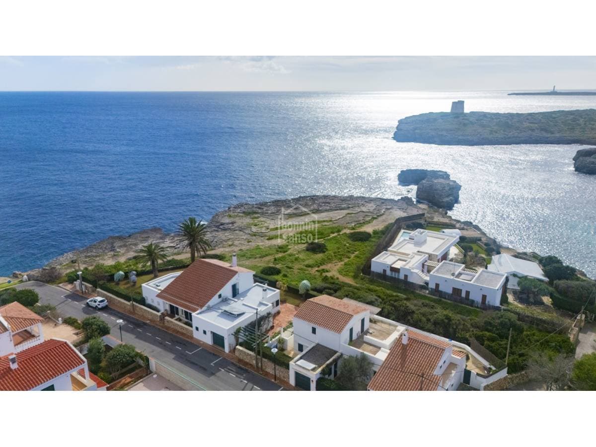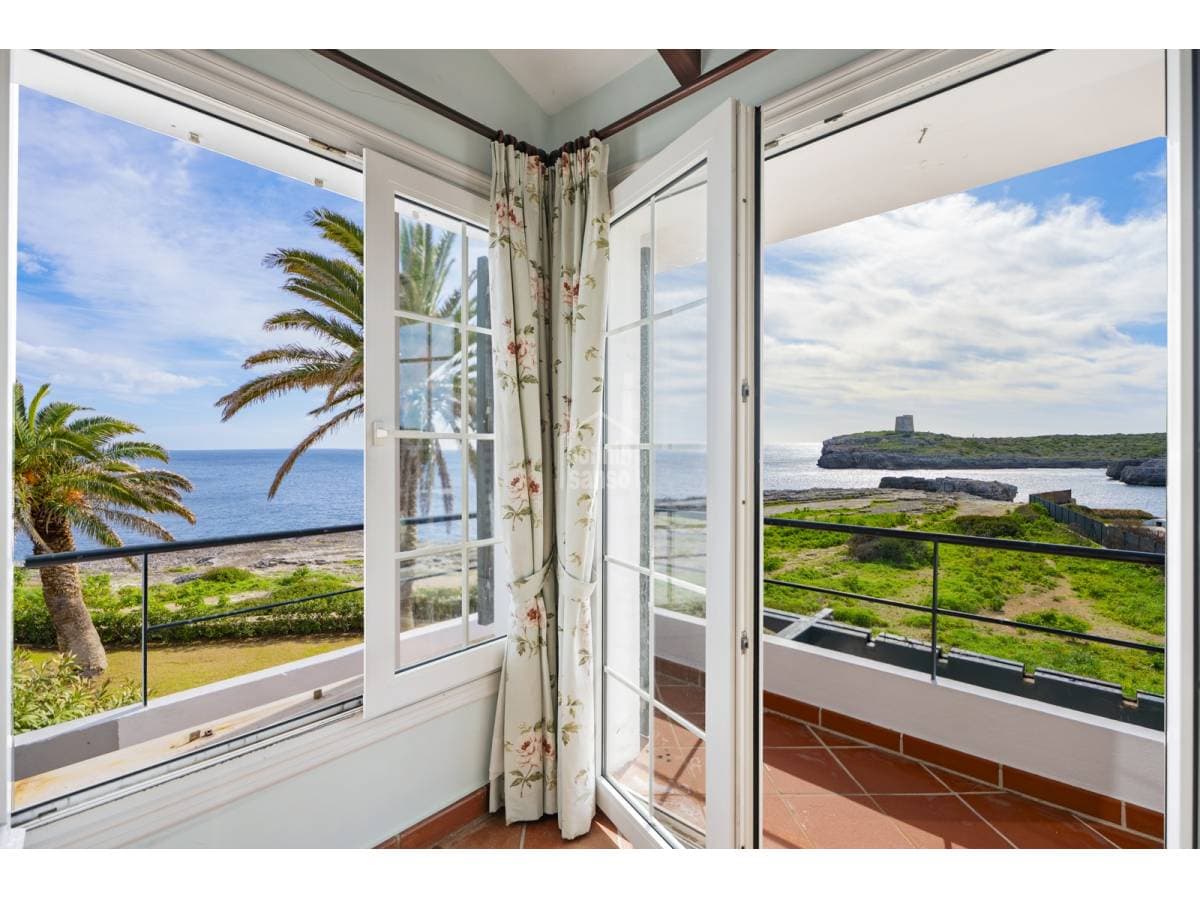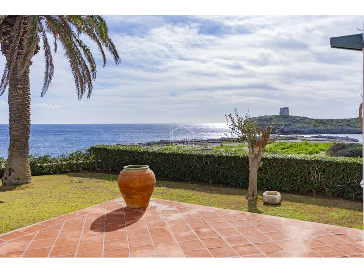 Set in a truly exceptional position on the water's edge, this elegant villa is located on a quiet road in the idyllic fishing village of Alcaufar, one of Menorca's most unspoilt coastal enclaves. A gentle stroll of just a few minutes leads to the local beach, where crystal-clear waters and white sand create a setting of natural beauty, complemented by charming seafront eateries that preserve the village's authentic character. The villa is beautifully maintained and thoughtfully designed to make the most of its privileged surroundings. Every room enjoys uninterrupted sea views, fostering a constant connection with the Mediterranean landscape. Natural light and coastal panoramas flow effortlessly throughout the interior. The front door opens into a spacious, light-filled living room, centred around a welcoming fireplace and enhanced by a sweeping staircase rising to the upper floor, creating an immediate sense of elegance and grandeur. Also on this level are two generous double bedrooms. One features a dressing room and en-suite bathroom, while the second offers fitted wardrobes, an en-suite bathroom and direct access to the garden. The upper floor is dedicated to comfort and privacy, comprising a substantial private lounge and an impressive principal suite. This expansive bedroom includes an en-suite bathroom and access to terraces from which panoramic sea views can be enjoyed in complete tranquillity. Additional features include a garage, workshop, utility room and air conditioning throughout. The garden provides ample space for the construction of a swimming pool, perfectly complementing the outdoor lifestyle and remarkable coastal setting. During the summer months, the panorama becomes particularly enchanting, as sailing boats glide gracefully in and out of the bay, adding gentle movement and colour to an already captivating scene. A rare opportunity to acquire a distinguished coastal residence in one of Menorca's most charming and exclusive seaside villages—where elegance, authenticity and location combine in perfect harmony.