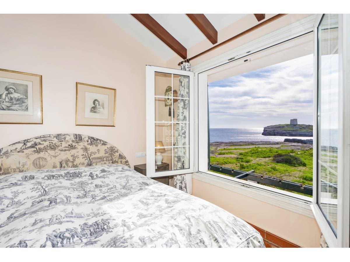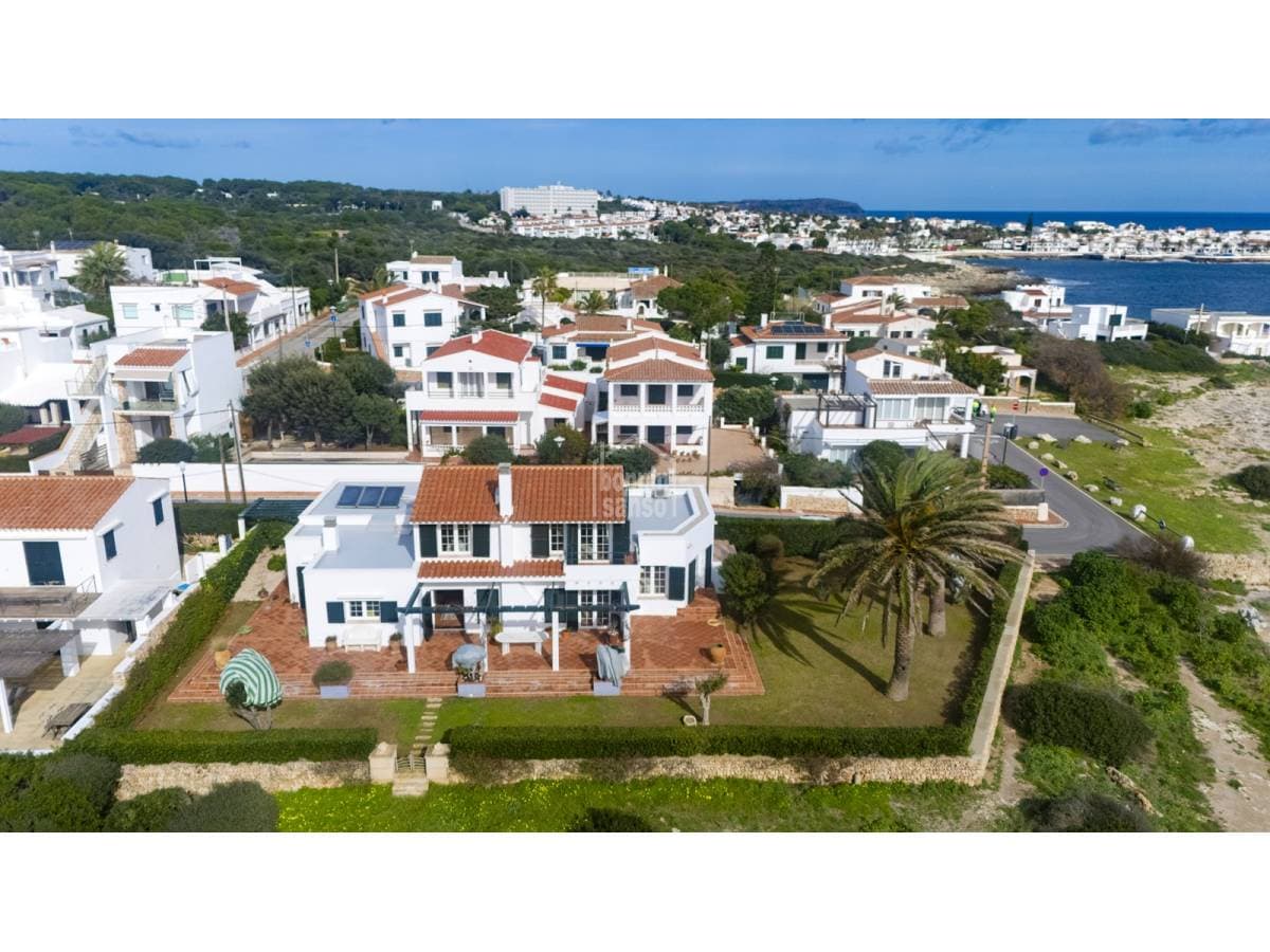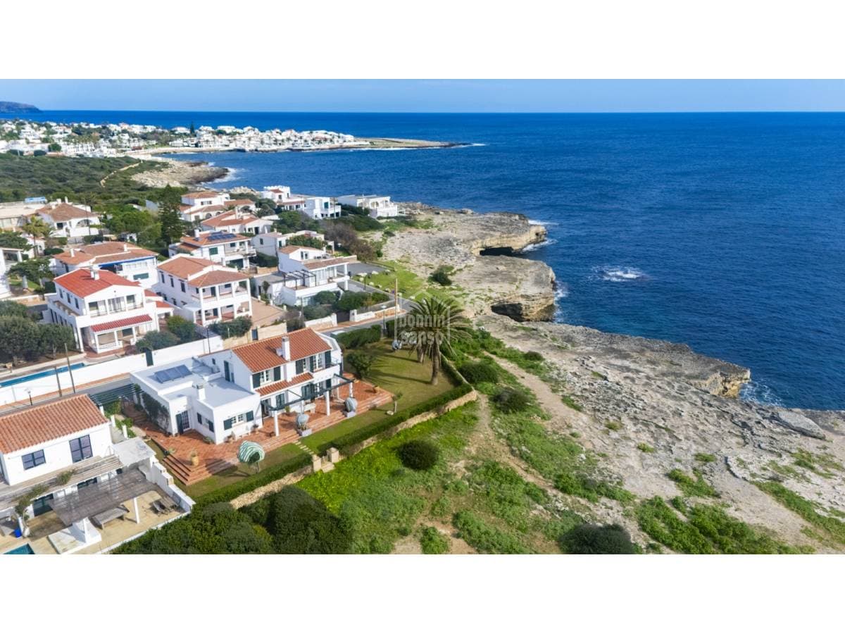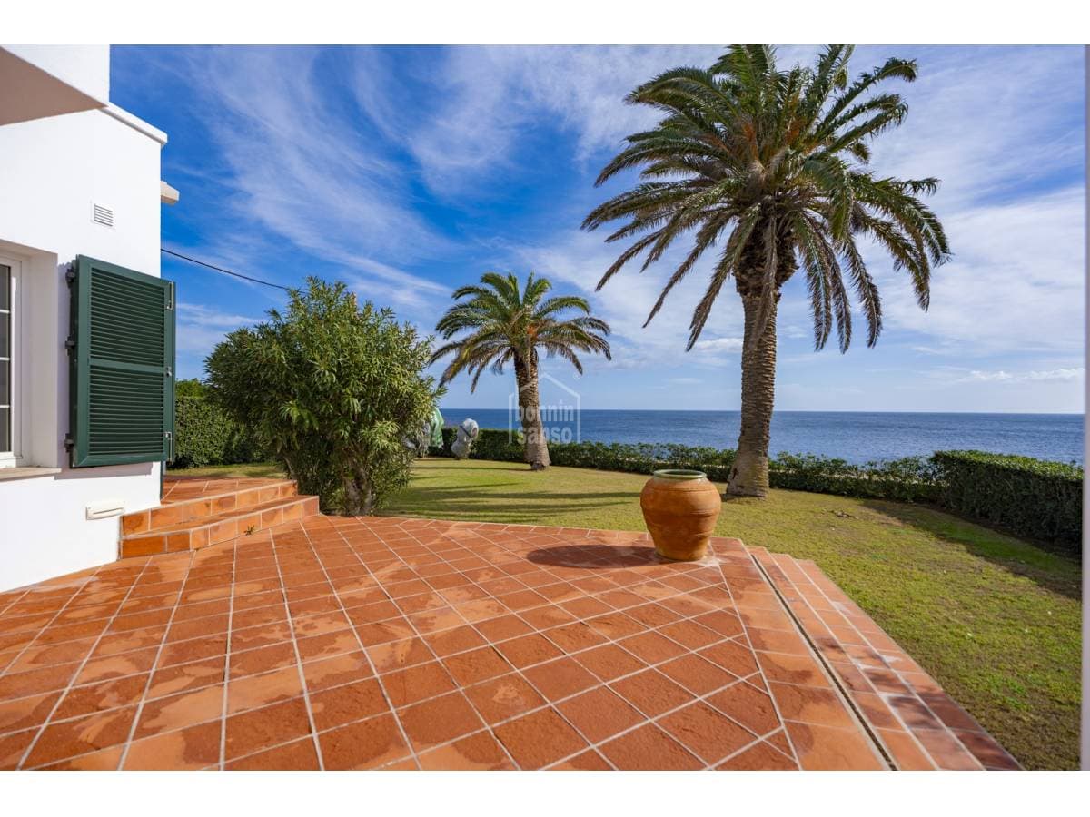 Set in a truly exceptional position on the water's edge, this elegant villa is located on a quiet road in the idyllic fishing village of Alcaufar, one of Menorca's most unspoilt coastal enclaves. A gentle stroll of just a few minutes leads to the local beach, where crystal-clear waters and white sand create a setting of natural beauty, complemented by charming seafront eateries that preserve the village's authentic character. The villa is beautifully maintained and thoughtfully designed to make the most of its privileged surroundings. Every room enjoys uninterrupted sea views, fostering a constant connection with the Mediterranean landscape. Natural light and coastal panoramas flow effortlessly throughout the interior. The front door opens into a spacious, light-filled living room, centred around a welcoming fireplace and enhanced by a sweeping staircase rising to the upper floor, creating an immediate sense of elegance and grandeur. Also on this level are two generous double bedrooms. One features a dressing room and en-suite bathroom, while the second offers fitted wardrobes, an en-suite bathroom and direct access to the garden. The upper floor is dedicated to comfort and privacy, comprising a substantial private lounge and an impressive principal suite. This expansive bedroom includes an en-suite bathroom and access to terraces from which panoramic sea views can be enjoyed in complete tranquillity. Additional features include a garage, workshop, utility room and air conditioning throughout. The garden provides ample space for the construction of a swimming pool, perfectly complementing the outdoor lifestyle and remarkable coastal setting. During the summer months, the panorama becomes particularly enchanting, as sailing boats glide gracefully in and out of the bay, adding gentle movement and colour to an already captivating scene. A rare opportunity to acquire a distinguished coastal residence in one of Menorca's most charming and exclusive seaside villages—where elegance, authenticity and location combine in perfect harmony.