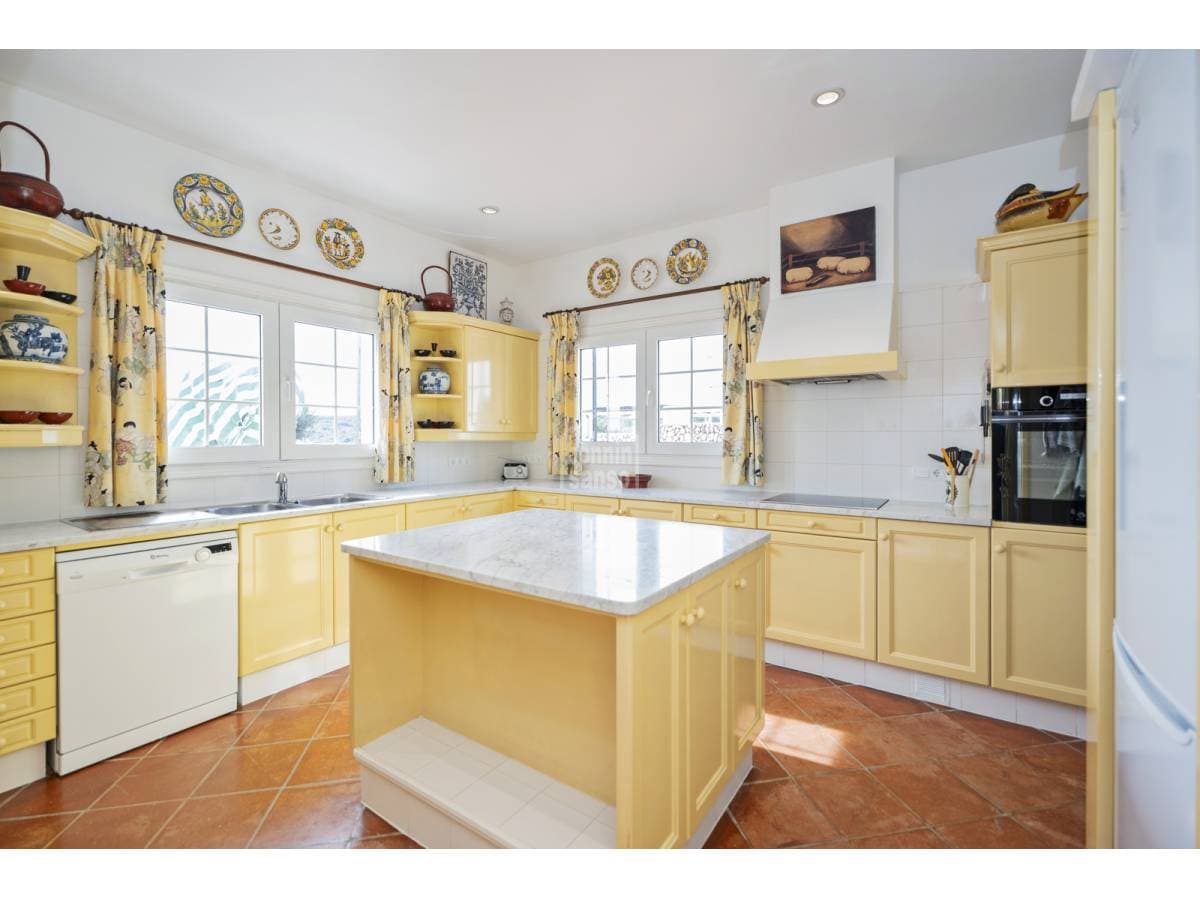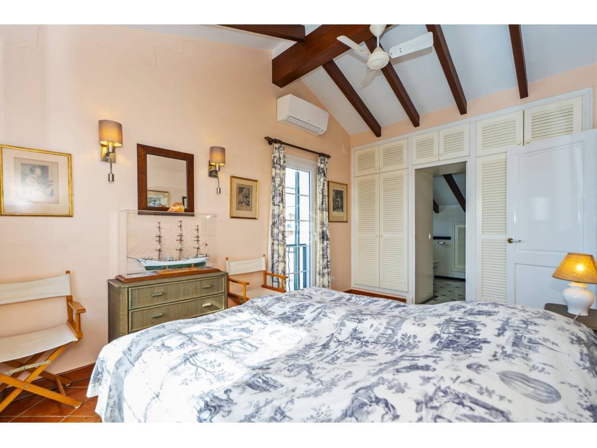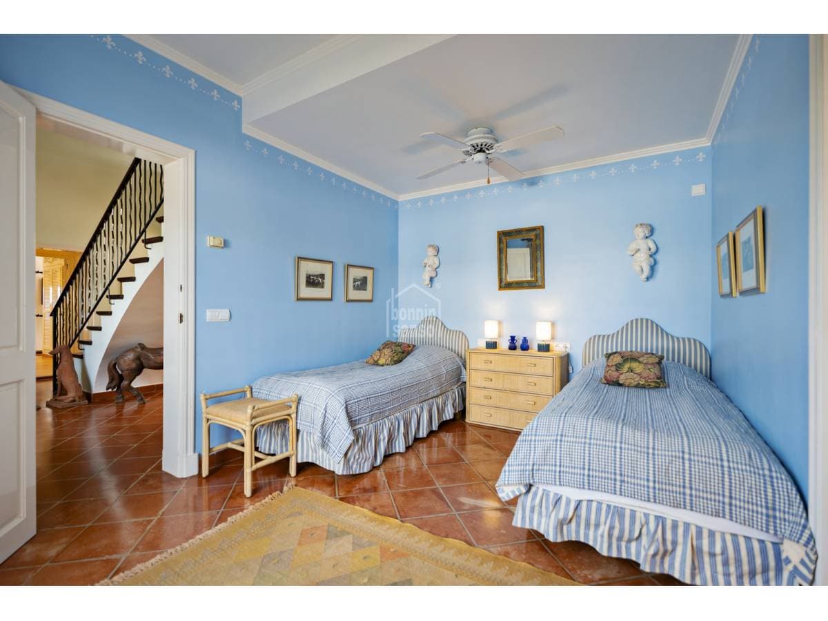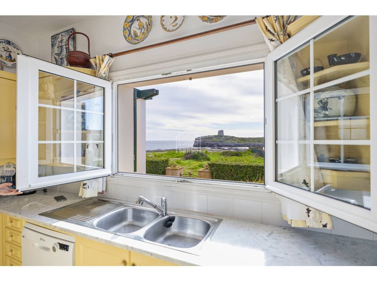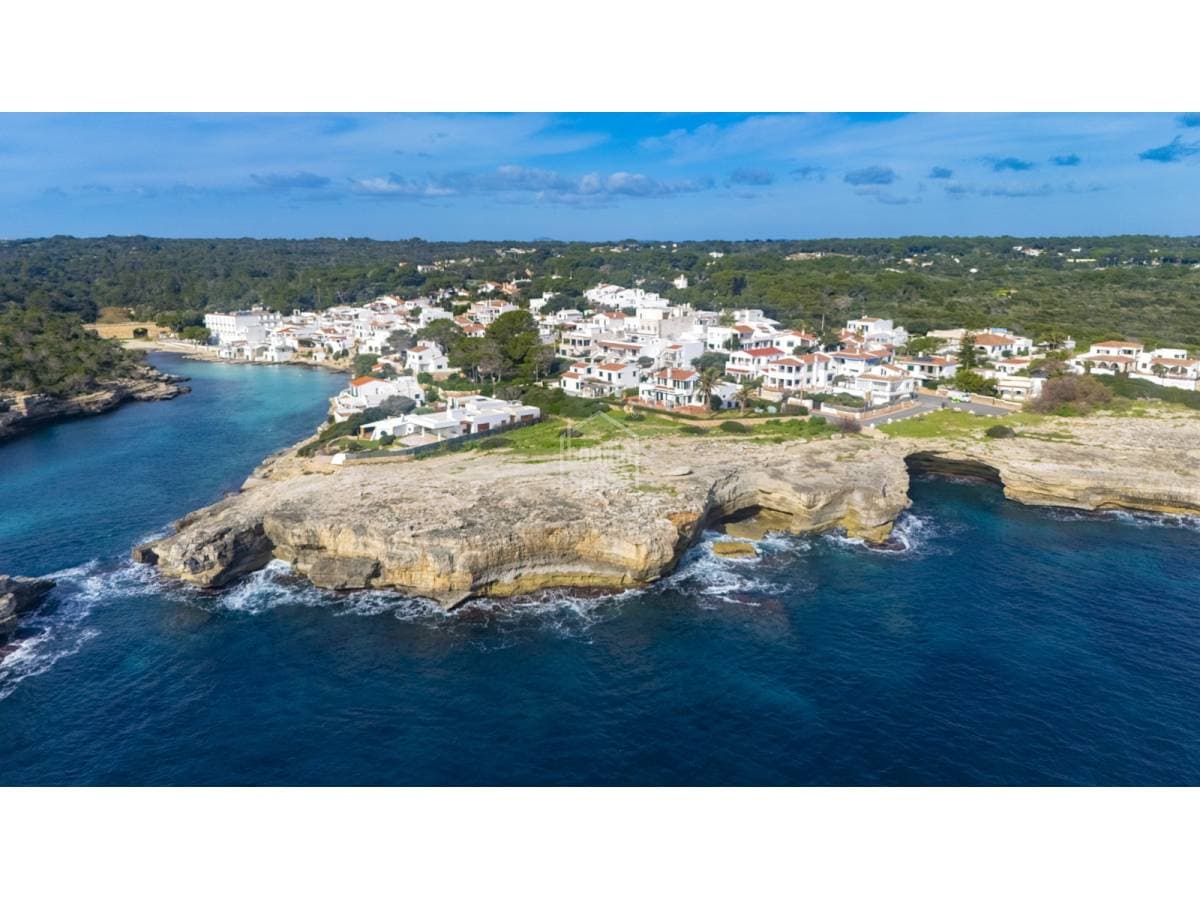 Set in a truly exceptional position on the water's edge, this elegant villa is located on a quiet road in the idyllic fishing village of Alcaufar, one of Menorca's most unspoilt coastal enclaves. A gentle stroll of just a few minutes leads to the local beach, where crystal-clear waters and white sand create a setting of natural beauty, complemented by charming seafront eateries that preserve the village's authentic character. The villa is beautifully maintained and thoughtfully designed to make the most of its privileged surroundings. Every room enjoys uninterrupted sea views, fostering a constant connection with the Mediterranean landscape. Natural light and coastal panoramas flow effortlessly throughout the interior. The front door opens into a spacious, light-filled living room, centred around a welcoming fireplace and enhanced by a sweeping staircase rising to the upper floor, creating an immediate sense of elegance and grandeur. Also on this level are two generous double bedrooms. One features a dressing room and en-suite bathroom, while the second offers fitted wardrobes, an en-suite bathroom and direct access to the garden. The upper floor is dedicated to comfort and privacy, comprising a substantial private lounge and an impressive principal suite. This expansive bedroom includes an en-suite bathroom and access to terraces from which panoramic sea views can be enjoyed in complete tranquillity. Additional features include a garage, workshop, utility room and air conditioning throughout. The garden provides ample space for the construction of a swimming pool, perfectly complementing the outdoor lifestyle and remarkable coastal setting. During the summer months, the panorama becomes particularly enchanting, as sailing boats glide gracefully in and out of the bay, adding gentle movement and colour to an already captivating scene. A rare opportunity to acquire a distinguished coastal residence in one of Menorca's most charming and exclusive seaside villages—where elegance, authenticity and location combine in perfect harmony.