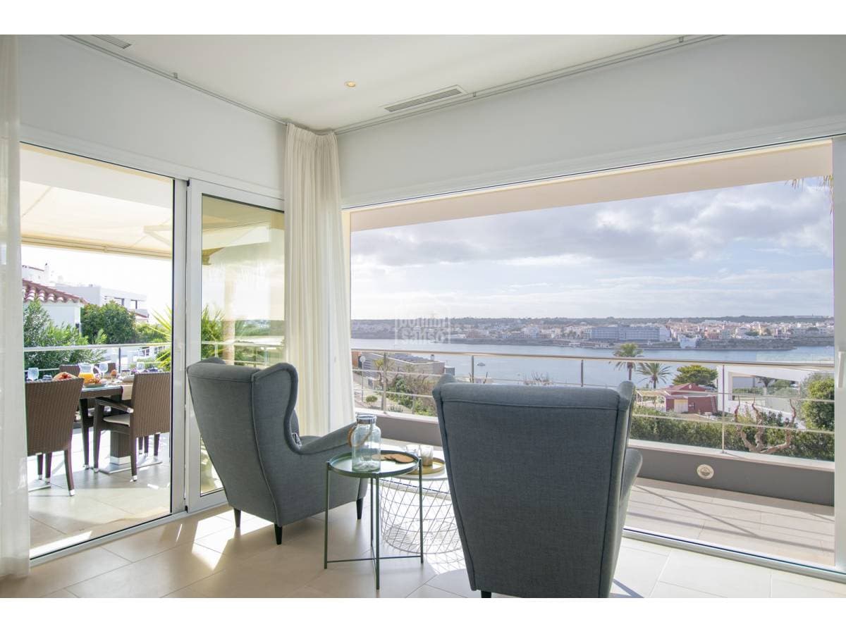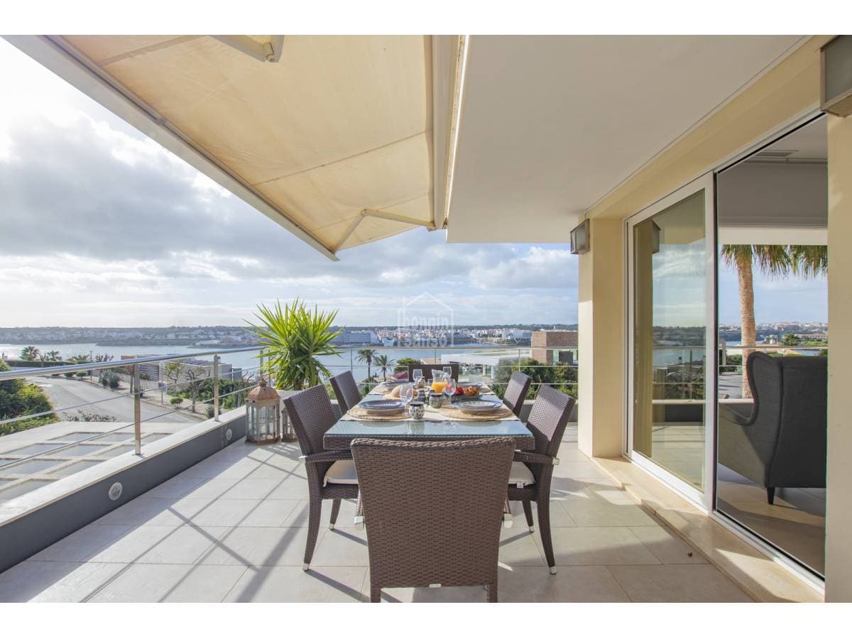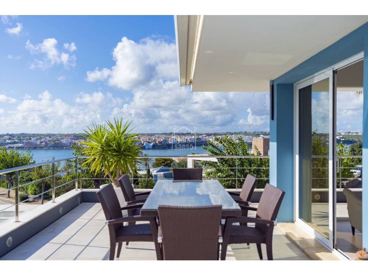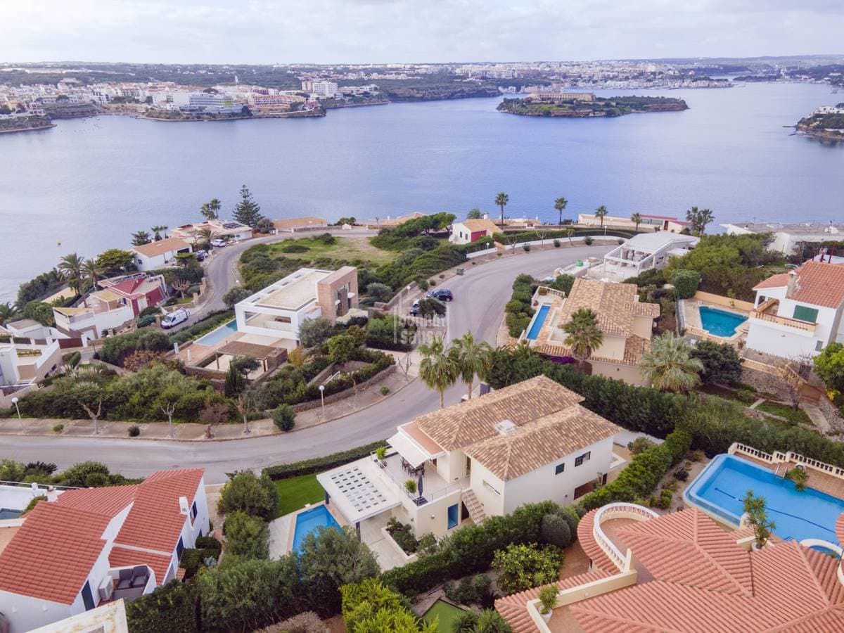 Exceptional villa with impressive views over the Port of Mahón. The property built in 2006 blends three fundamental ideas, light, space and design, the immense amount of light that permeates all rooms providing a constantly changing back drop. The spaciousness and generosity of its rooms, in addition to the comfort that comes from a solid construction, careful design, and attention to detail, form the key to this family villa located in the prestigious urbanisation of Cala Llonga. A total of five suites, all with direct exterior access. The master suite offers a dressing area, a shower cubicle as well as a bathroom with a bathtub, a cloakroom, a large garage, and a laundry area. The day area is open plan with incredible views from sunrise to the magnificent sunsets. This is the ideal property for you to live all year round or to spend holidays with family and friends Organize your visit now!
