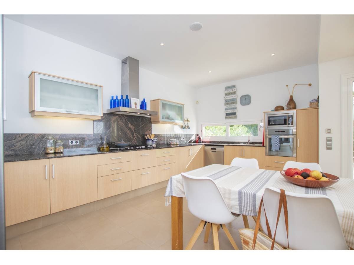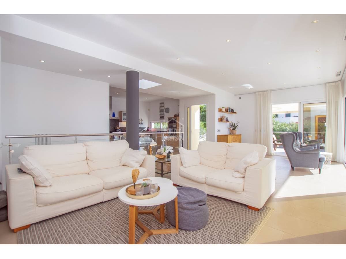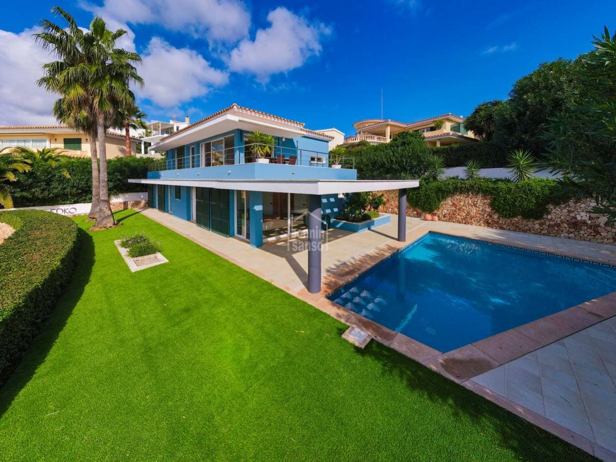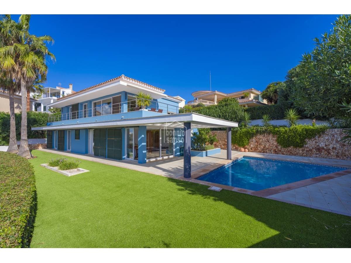 Exceptional villa with impressive views over the Port of Mahón. The property built in 2006 blends three fundamental ideas, light, space and design, the immense amount of light that permeates all rooms providing a constantly changing back drop. The spaciousness and generosity of its rooms, in addition to the comfort that comes from a solid construction, careful design, and attention to detail, form the key to this family villa located in the prestigious urbanisation of Cala Llonga. A total of five suites, all with direct exterior access. The master suite offers a dressing area, a shower cubicle as well as a bathroom with a bathtub, a cloakroom, a large garage, and a laundry area. The day area is open plan with incredible views from sunrise to the magnificent sunsets. This is the ideal property for you to live all year round or to spend holidays with family and friends Organize your visit now!
