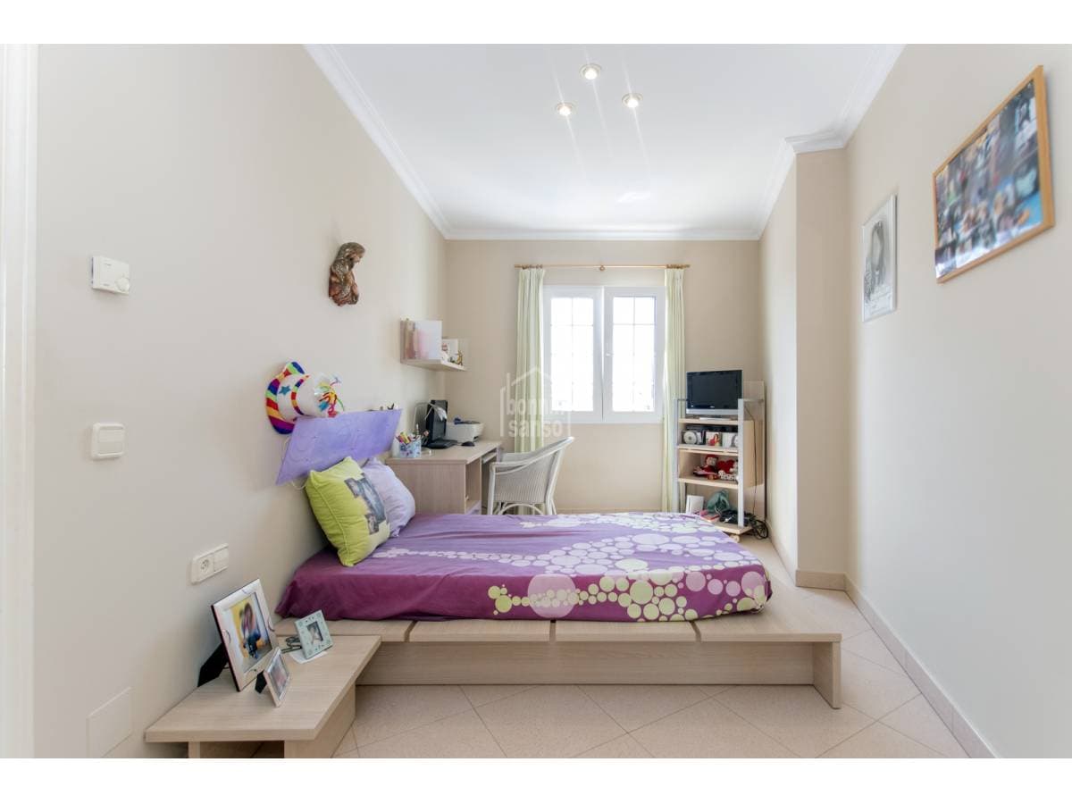 Semi-detached villa divided in two floors and basement in a quiet area of Mahon. The property consists of a ground floor hall, kitchen, dining room, guest cloakroom and a pleasant living room with lots of natural light with access to a terrace and the pool. On the first floor we find the night area where there are four generous bedrooms and two bathrooms (one of them ensuite). Finally, in the basement we have a garage with a storage/storage area. An ideal home to live all year round or spend time on the island.