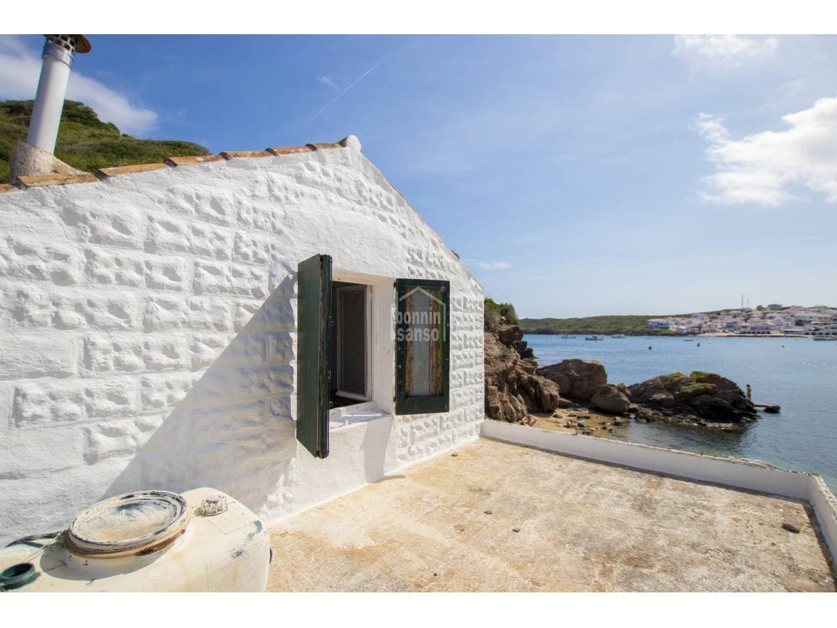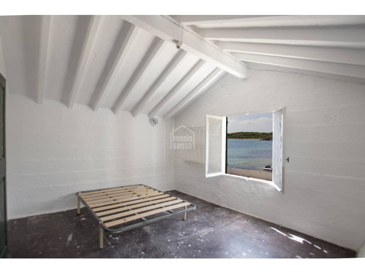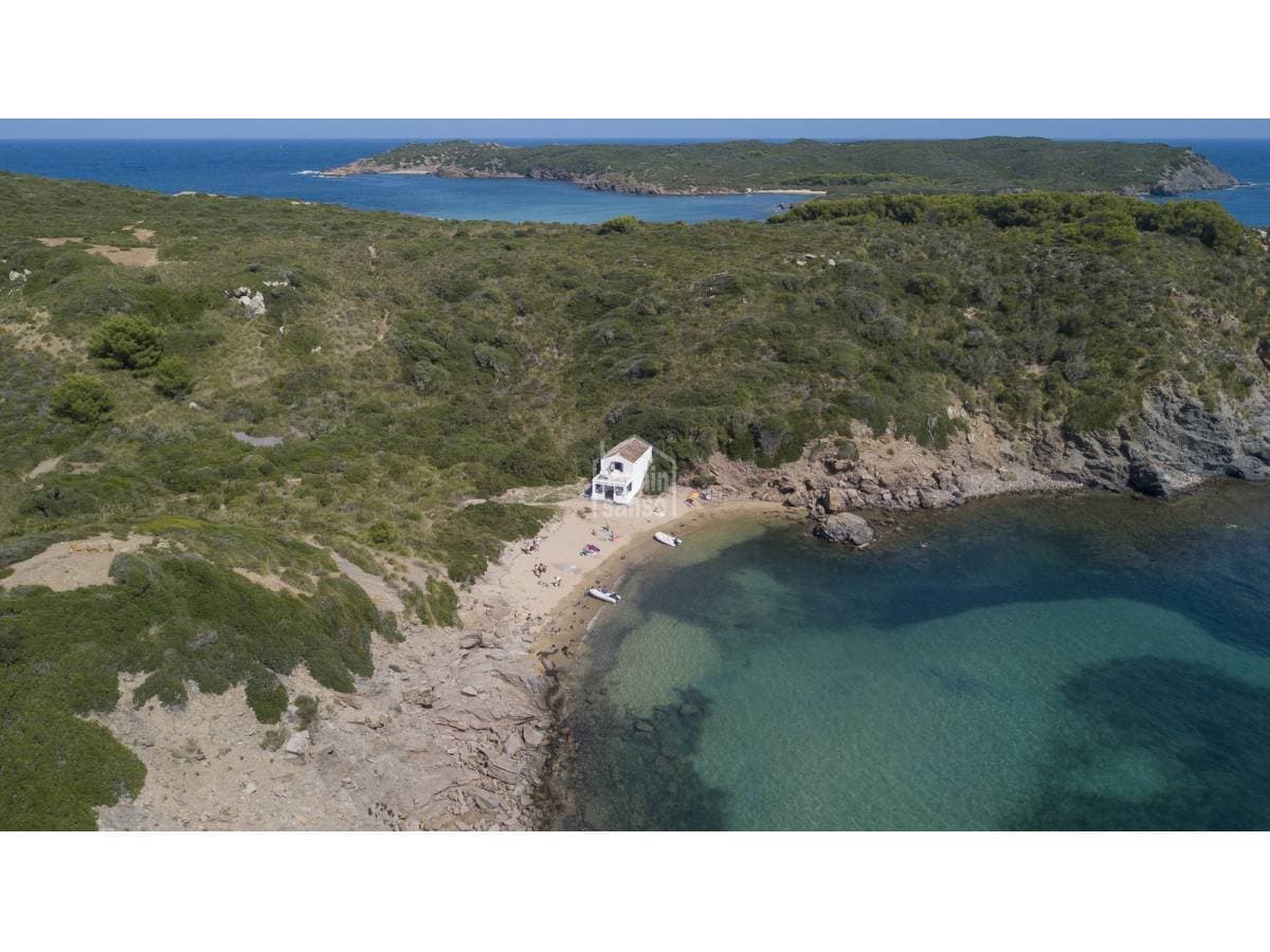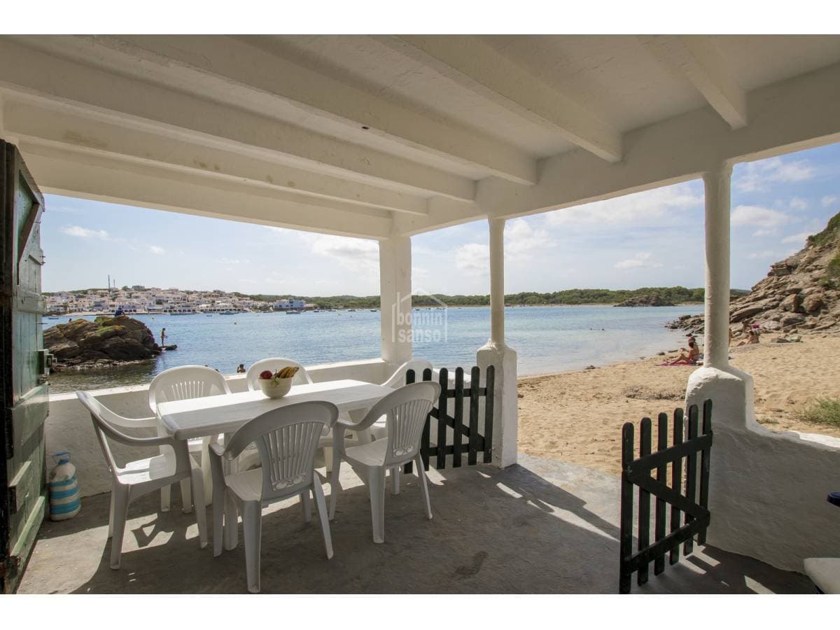 Charming traditional fishing cottage, situated on the beach of Calan Vidrier, in Es Grau. It's on the north coast of Menorca but the cottage is south facing, due to this you will be able to enjoy many more hours of sunshine and overlook the sweet village of Es Grau. I would not be very wrong in saying it is one the most charming little beach houses you can find on the island of Menorca. This building offers almost 80m², with a covered terrace, that shelters you from the warm caress of the Mediterranean sun, when you need to cool down. It's distributed over 2 floors, with the ground floor built in the traditional stone, the first floor was built with local limestone.