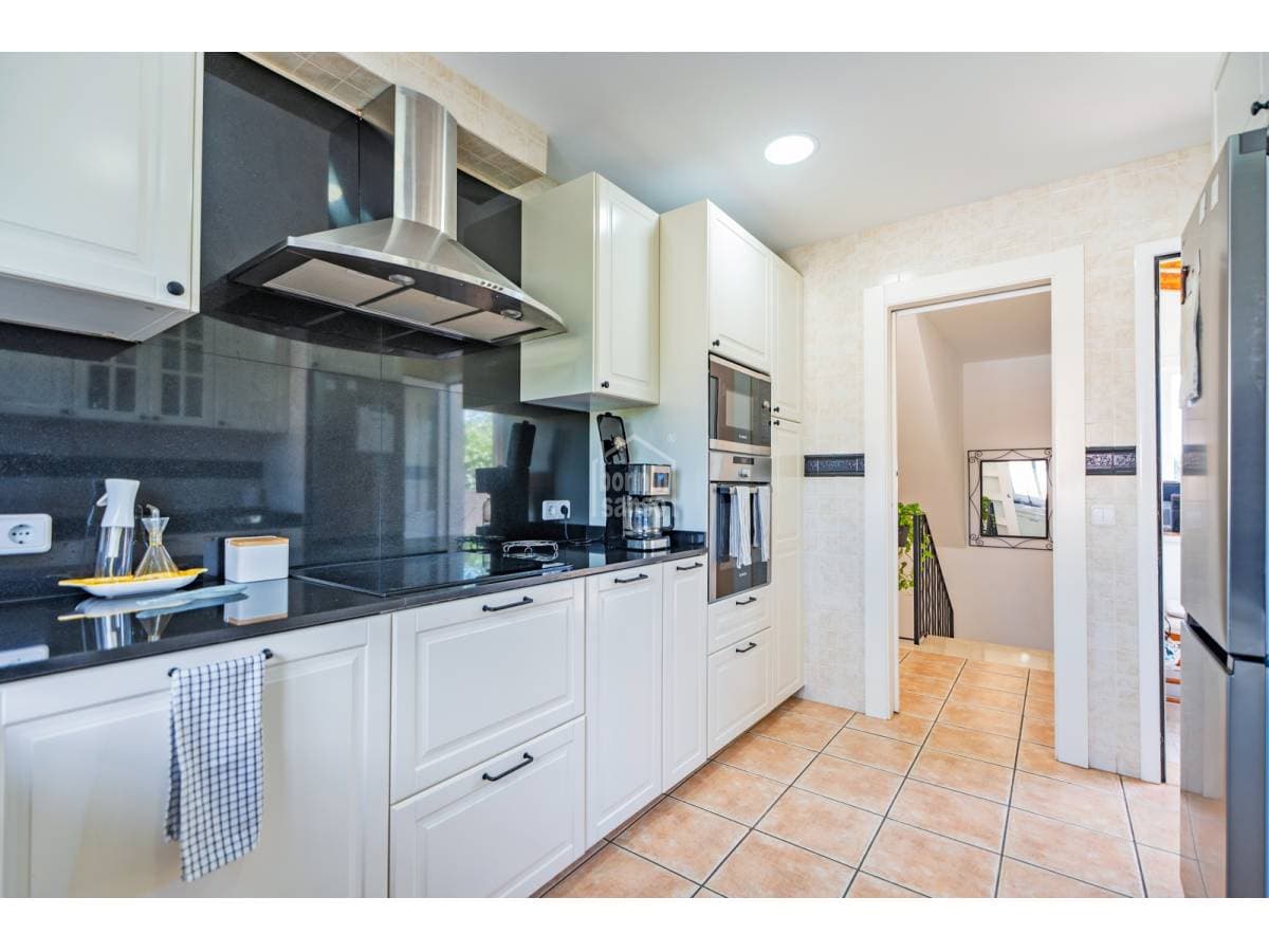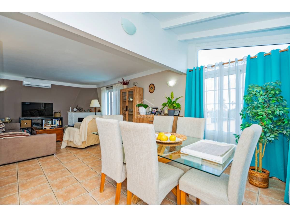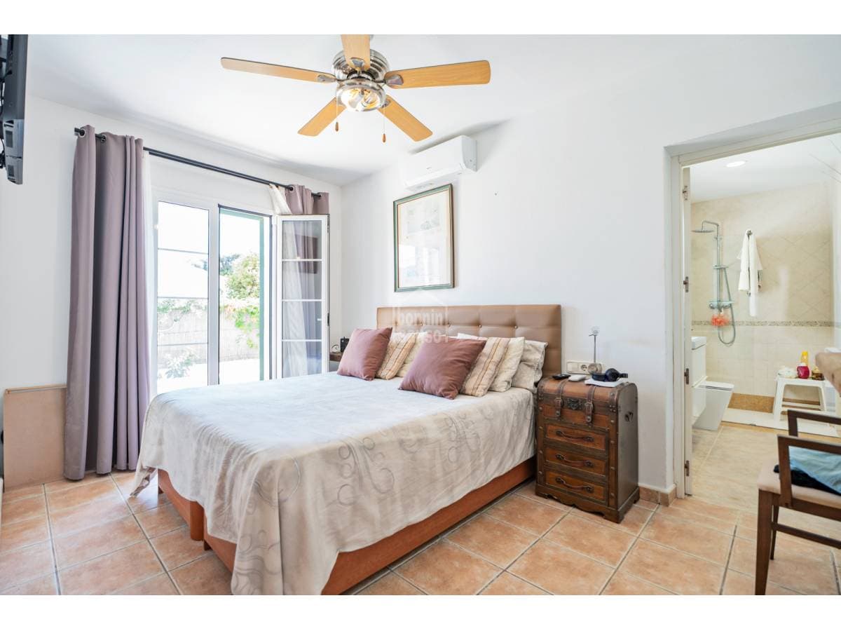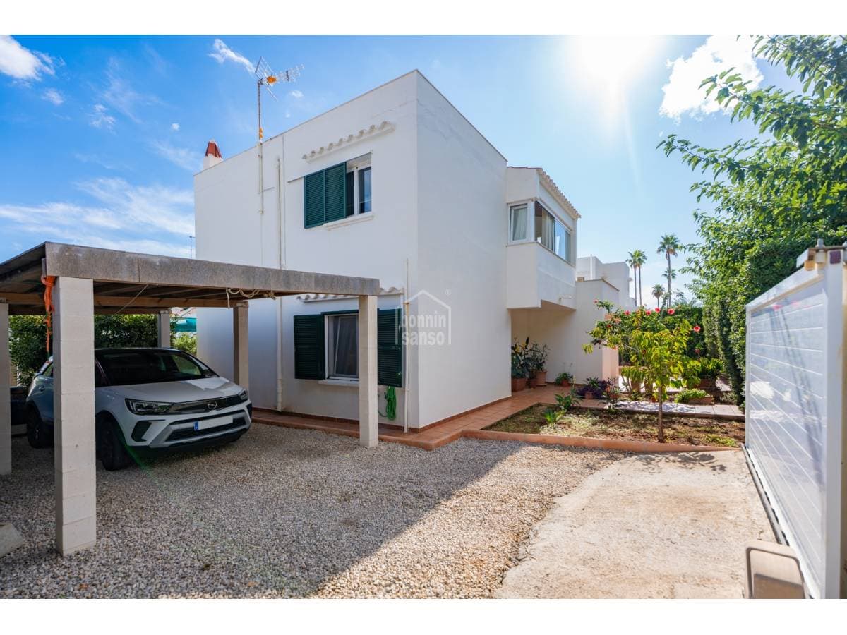 Tucked away on a generous and private plot just moments from the sea, this charming villa blends coastal living with comfort, privacy and convenience. From the spacious roof terrace, sweeping views provide the perfect setting to enjoy sunrises over the water and warm Mediterranean evenings under the stars. The home is surrounded by a beautifully maintained garden with mature planting and several sunbathing terraces, offering peaceful corners for relaxing or entertaining. At the heart of the outdoor space is a secluded swimming pool, sheltered from view and ideal for cooling off or simply soaking up the sunshine in complete privacy. Inside, the villa offers a bright open-plan layout that flows effortlessly from the newly fitted kitchen into a spacious sitting and dining area. This welcoming room is equipped with both air conditioning for the warmer months and a cosy fireplace for cooler evenings, creating year-round comfort. Large doors open directly onto a covered terrace — perfect for outdoor dining or unwinding with a book. There are three generously sized double bedrooms, each filled with natural light. The principal bedroom benefits from its own en-suite bathroom and dressing room, while the remaining bedrooms share a well-appointed family bathroom. Practical features include a carport and off-road parking. The villa is ideally located just a short drive from San Luis, a lively town offering a wide range of shops, services and amenities. Even closer, in the coastal area of S'Algar, you'll find several restaurants and a small supermarket — all within easy reach for everyday essentials or spontaneous meals out.