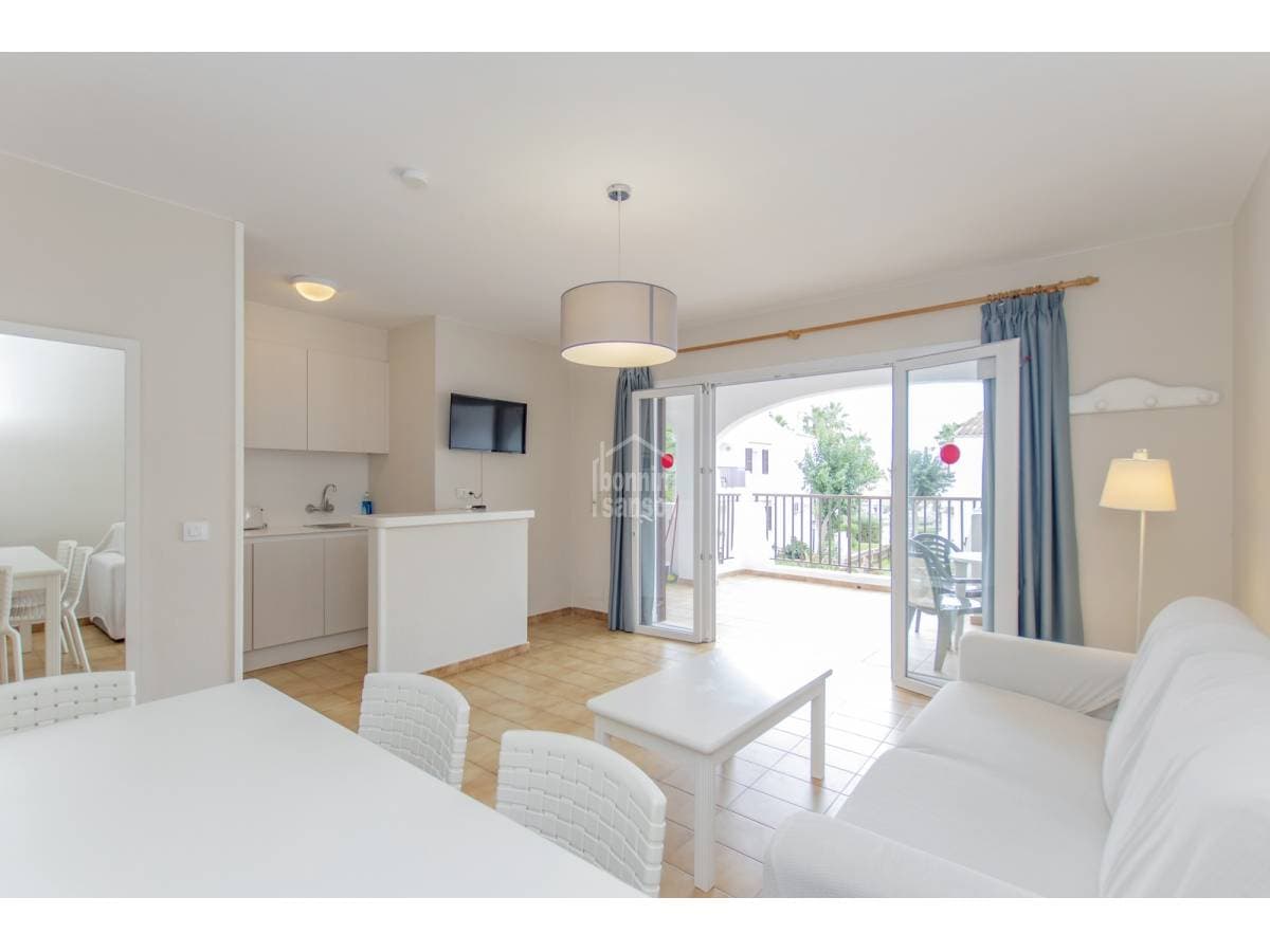 Tourist apartment in operation located in an attractive holiday complex in Cala en Porter, just a few minutes from the beach and close to all amenities. The property, on the ground floor and measuring approximately 50 m², comprises two bedrooms, a bathroom, a living-dining room with an open-plan kitchen, and a private 19 m² terrace. The complex offers a swimming pool, landscaped gardens, a children's area, reception, bar and restaurant, as well as a digital access control system ensuring security and privacy.
