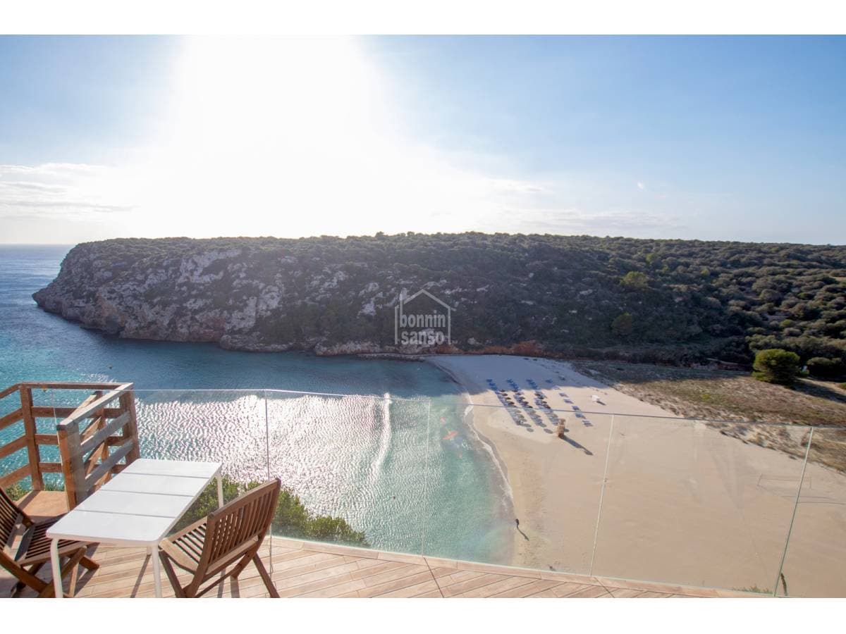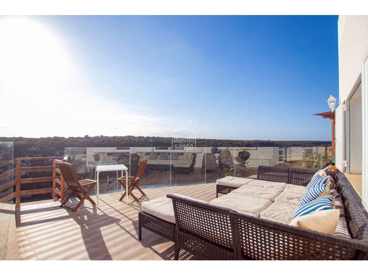 BUY IT NOW...Villa with stunning panoramic views of the beach and cove of Calan Porter. This villa has been totally remodelled in a contemporary style, both practical and functional, it offers comfort, peace and quality of life. The volumes have been created to enjoy the landscape in style and comfort. The pallet of colours and quality of materials used are exceptional. The villa is on two levels, comprising of two double bedrooms, bathrooms large living room, kitchen, large panoramic terraces, it also has a private swimming pool. (posibility of third bedroom second bathroom) Shall we visit?