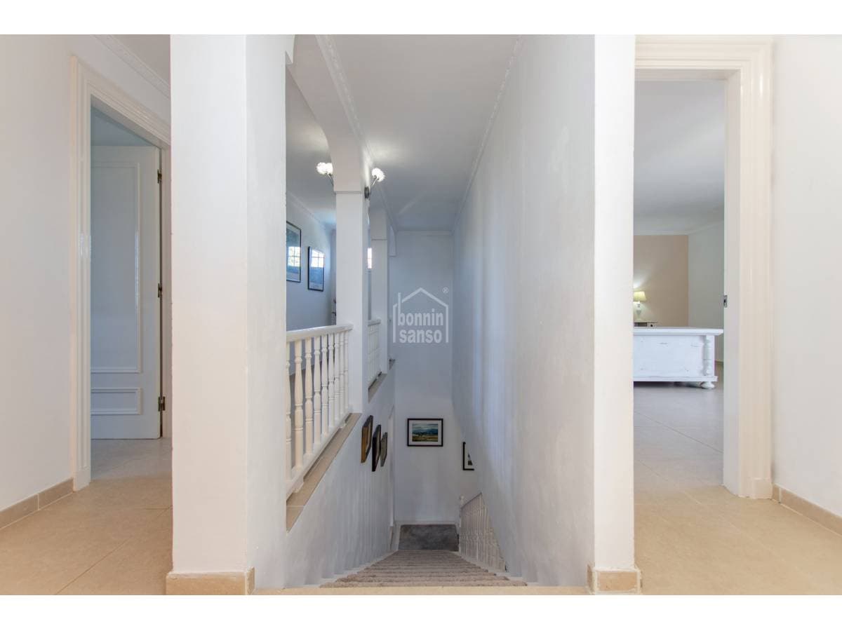 Welcome to this spacious family home, located in the heart of the charming village of Llumesanes, an idyllic setting offering peace and tranquillity within a picturesque environment. The property is designed to provide a comfortable and refined lifestyle, while remaining conveniently close to all amenities. A grand entrance hall forms the central axis of the home, creating a well-organised and thoughtfully designed ground-floor layout. On this level, a generously proportioned double bedroom with direct access to the exterior, along with a separate bathroom, makes an ideal space for guests or family members. The living areas are generous and inviting, comprising a lounge with an attractive feature fireplace, a spacious dining room and a beautifully designed kitchen. A true culinary haven, the kitchen features a modern layout with a central island, offering ample space for food preparation and storage. Adjoining the kitchen is a charming snug area, perfect for relaxing with a book or enjoying a morning coffee. From the kitchen, there is also direct access to the garden. The upper floor accommodates three additional bedrooms: two delightful double bedrooms, tastefully decorated and fitted with wardrobes and air conditioning, which share a family bathroom, and the impressive principal suite. This private retreat features an en-suite bathroom with a luxurious free-standing bath, ideal for enjoying a spa-like experience in the comfort of your own home. A large basement further enhances the property, providing excellent storage space. The garden is designed for enjoyment and relaxation, boasting a large swimming pool and multiple terraces that create various areas for entertaining guests or simply making the most of the beautiful climate. A summerhouse completes the outdoor space, offering additional storage or flexible use depending on requirements. A smart and spacious family home, thoughtfully conceived to deliver comfort, quality and convenience in a peaceful village setting.
