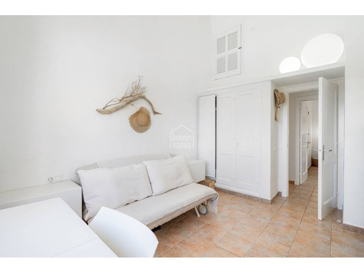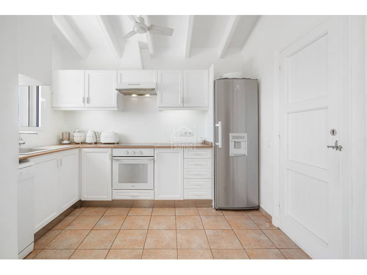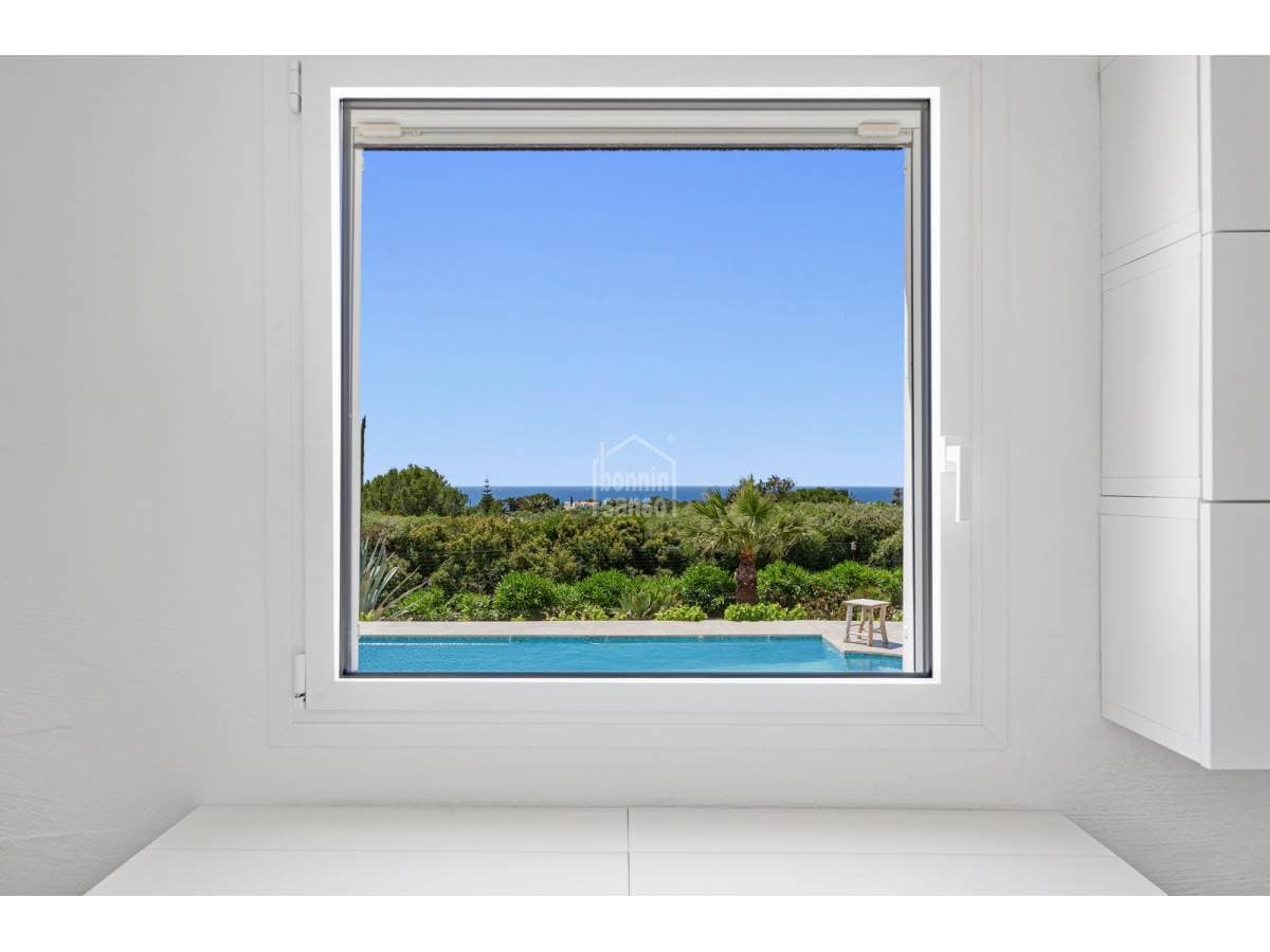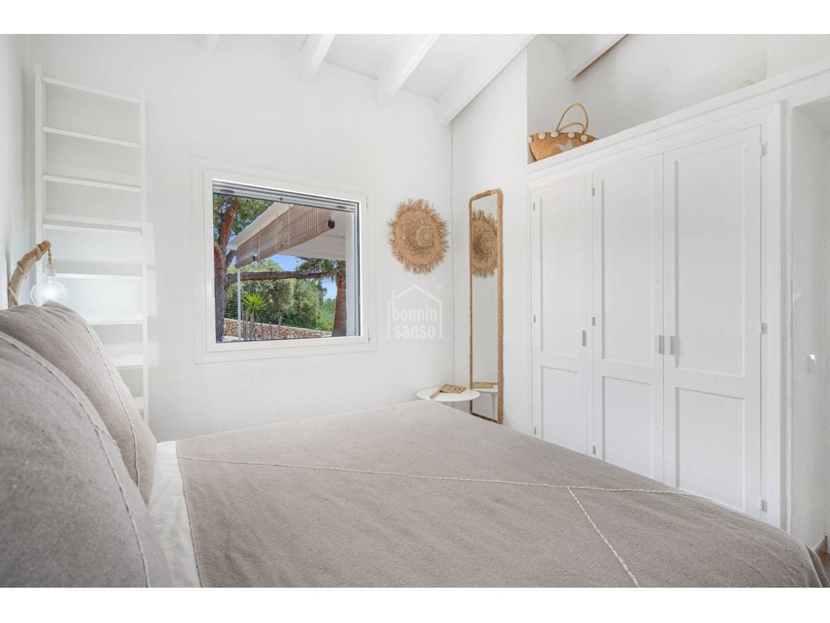 Set in a prime location, surrounded by peace and nature, this charming villa enjoys spectacular sea views and lies just a few minutes from the crystal-clear waters of Binisafúa and Caló Blanc. The property stands out for its Mediterranean character, with an exterior thoughtfully designed for relaxed living. It features inviting outdoor seating areas, a welcoming porch and charming spaces for al fresco dining beneath the trees, perfect for long summer evenings. The pool, ideally positioned to enjoy some of the island's finest sunsets, is truly exceptional. Inside, the home conveys warmth and harmony through soft tones, natural materials and a comfortable, well-balanced layout. The open-plan living and dining area incorporates a fully integrated kitchen. There are three bedrooms and two bathrooms, one of them en suite to the principal bedroom. A home designed to embrace the authentic Menorcan lifestyle, ideal both as a second residence and for year-round living.