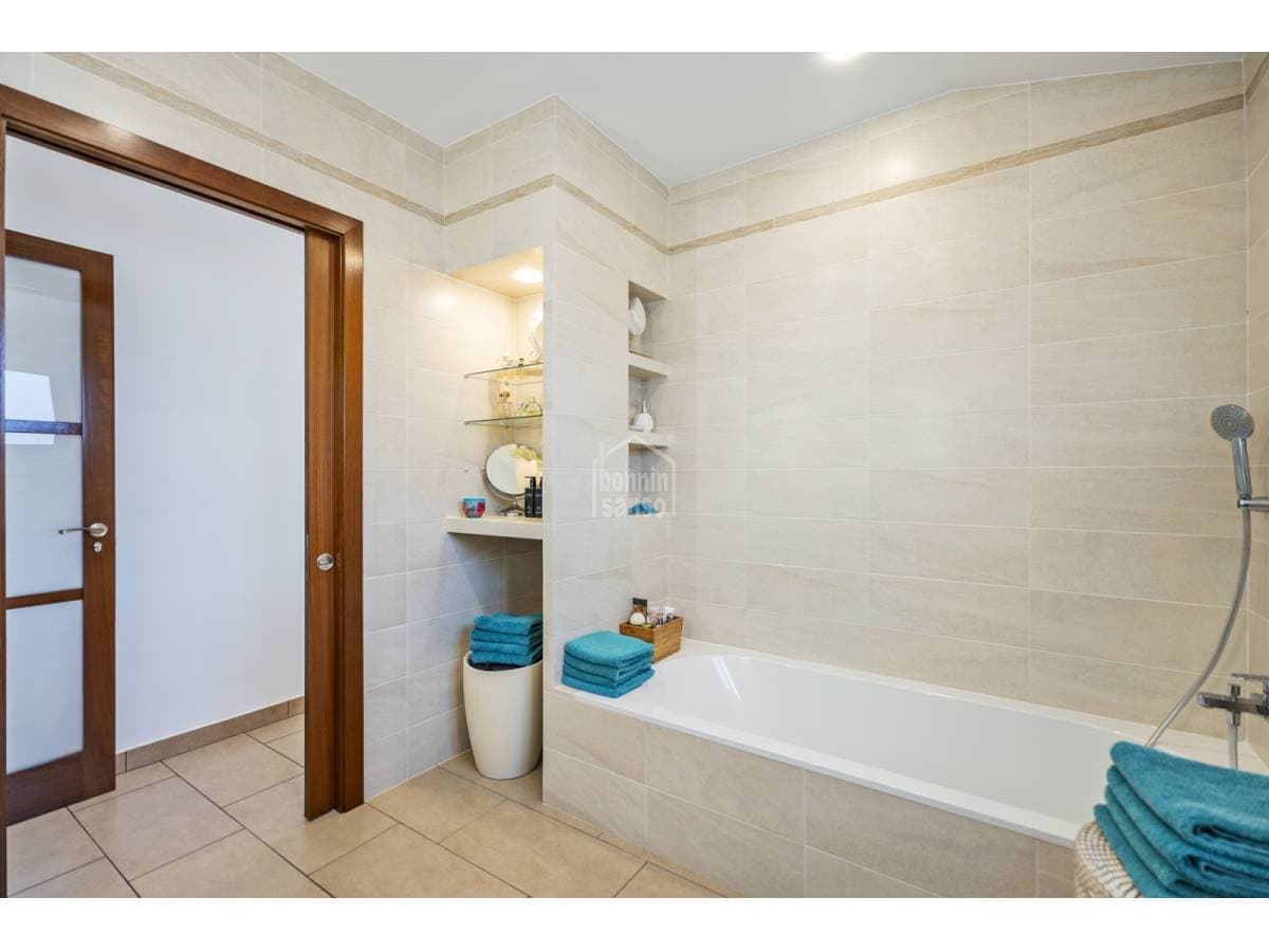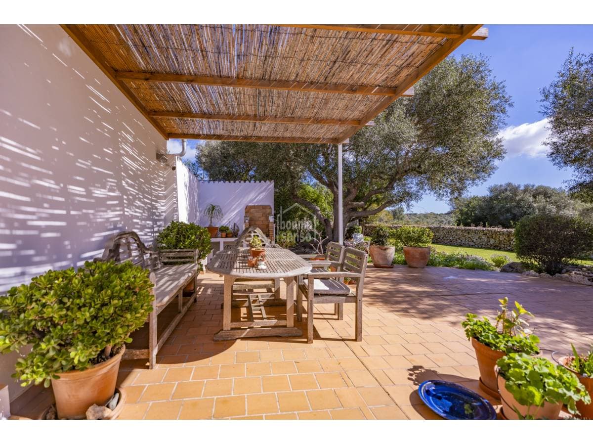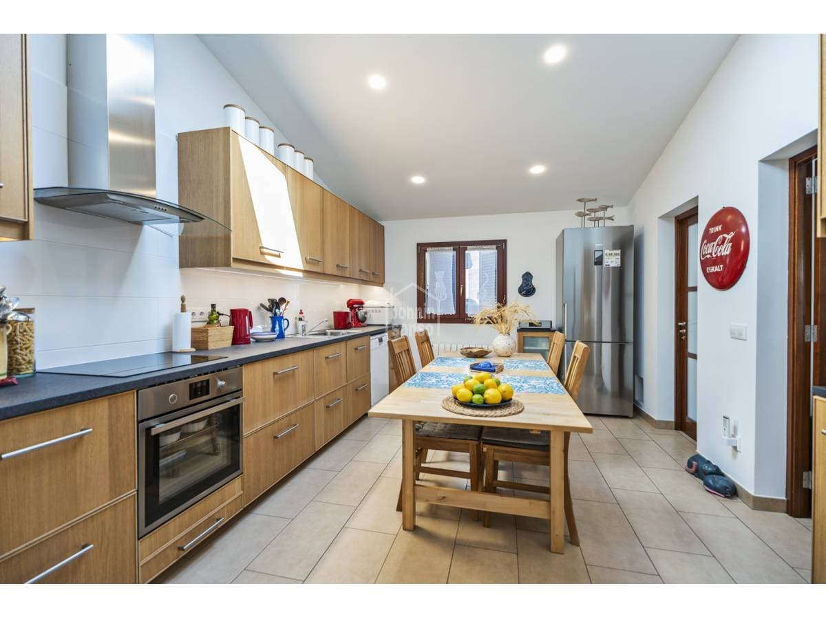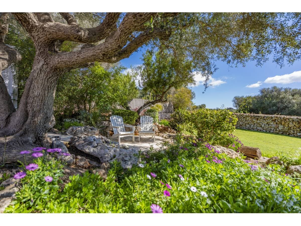 Set in a tranquil and well-established residential area in Binixica, this elegant single-level residence enjoys a privileged south-east orientation, allowing for abundant natural light throughout the day. Offering privacy and a calm atmosphere, the property has been carefully designed both as a holiday home and as a comfortable, efficient residence for year-round living. The accommodation comprises four well-proportioned bedrooms and two bathrooms, arranged within a balanced and practical layout. The generous kitchen is well suited to everyday use, while the integrated garage adds convenience. A split-level living and dining area creates distinct yet connected spaces, enhancing both character and a sense of openness. This is complemented by a second living area set within a covered terrace, a versatile space suitable for use throughout the year. The exterior areas are a key feature of the property. The landscaped garden, well maintained, includes mature Mediterranean planting and attractive century-old olive trees, providing natural shade and a pleasant setting. Open views further enhance the sense of space and tranquillity, creating an ideal environment for those seeking privacy and a connection with nature. With an Energy Performance Rating of A, the property offers efficiency, thermal comfort and sustainability, making it an excellent option as a permanent residence.
