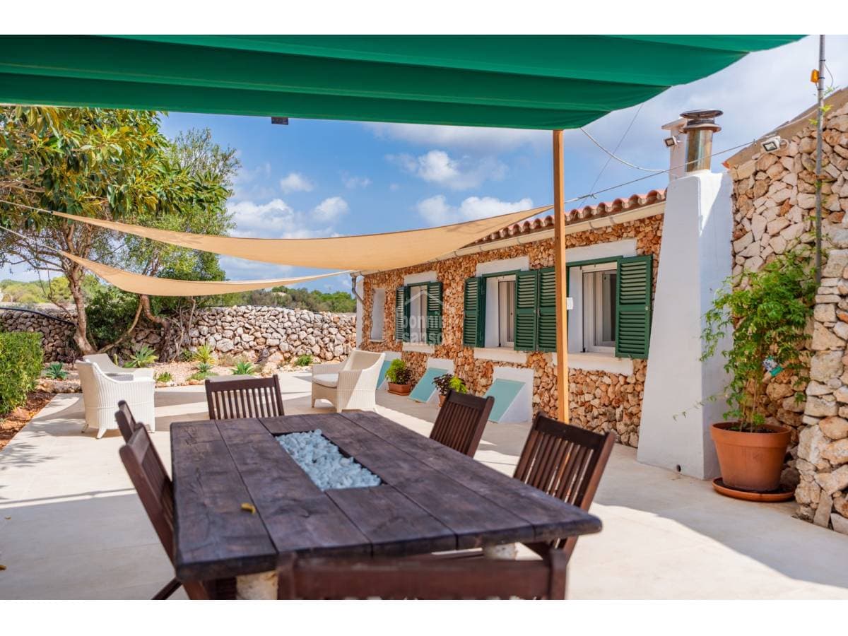 Charming rustic estate in the rural setting of Torret, in the municipality of Sant Lluís. A home with the authentic Menorcan style, featuring its characteristic dry-stone cladding, exquisitely renovated recently to offer maximum comfort while preserving its traditional essence. It is sold fully furnished and equipped, ready to move in. The house has a cozy kitchen-dining area, a laundry-pantry, four bedrooms, and two bathrooms. It features a warm winter lounge with a fireplace and a spacious summer lounge to enjoy the outdoors. The central heating system runs on diesel, ensuring comfort all year round. Additionally, all rooms are equipped with air conditioning units for perfect climate control in any season. With electricity from the grid and also solar panels, the property combines efficiency and sustainability. Outside, a beautiful garden with fruit trees and a vegetable garden allows you to enjoy fresh produce straight from the land. It also has its own well, a cistern, and a practical chicken coop for those who wish to live in harmony with nature. A unique opportunity to enjoy the peace of the countryside with all modern comforts, ideal for lovers of rural life and self-sufficient farming in a privileged setting.