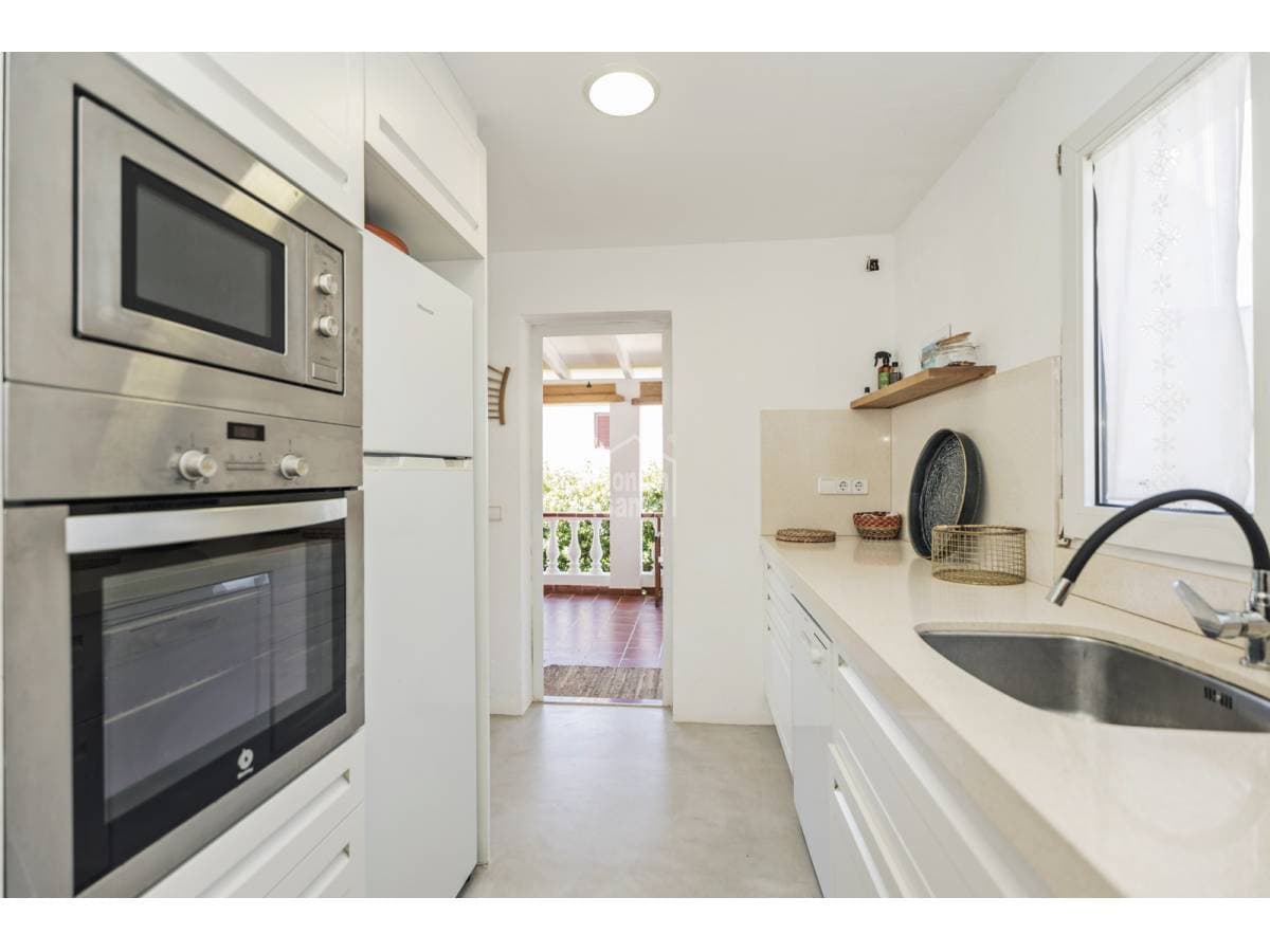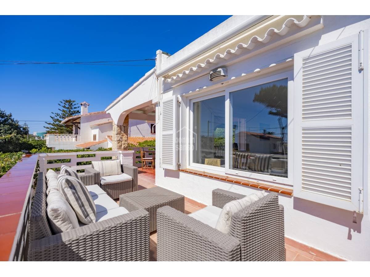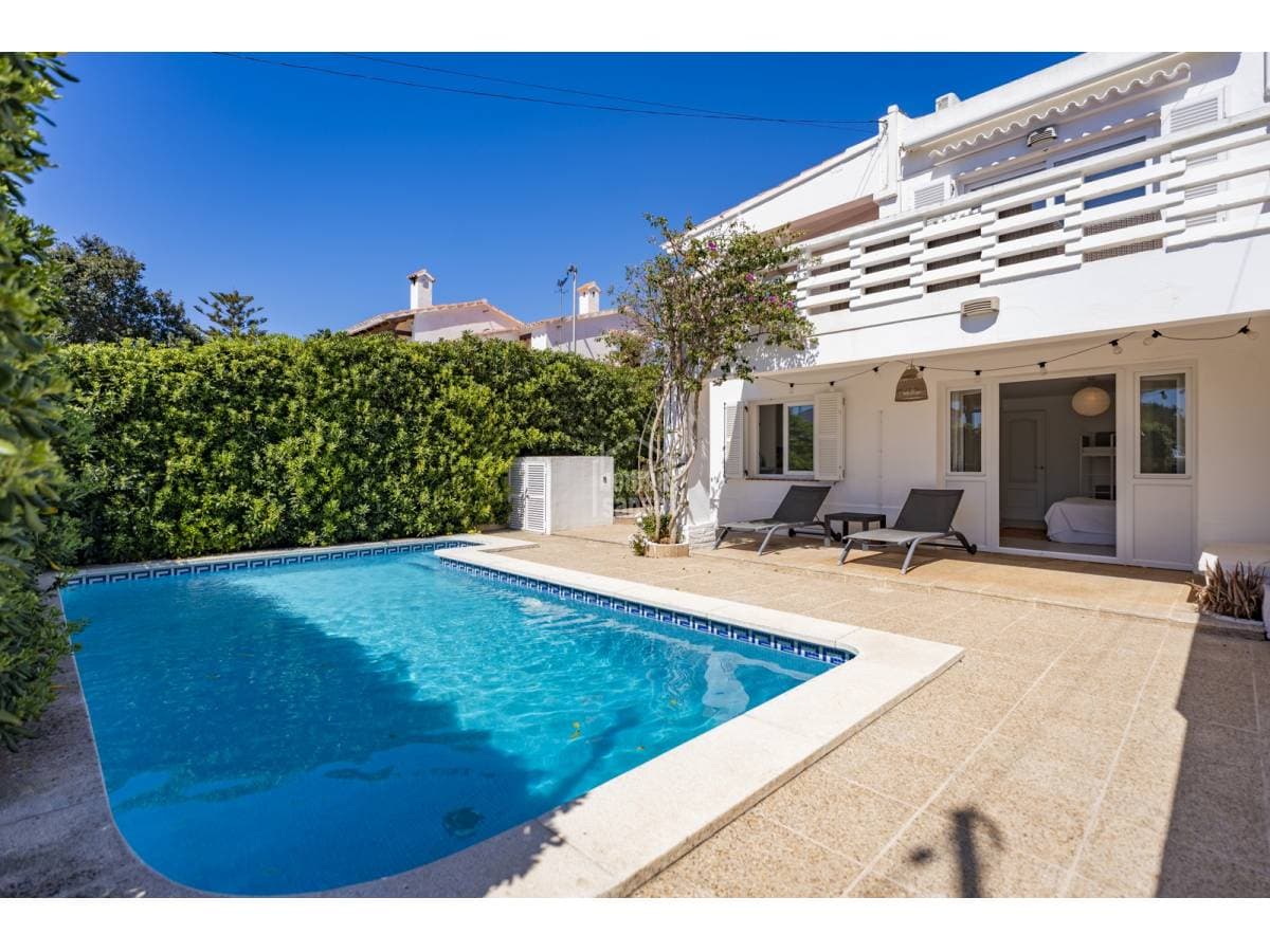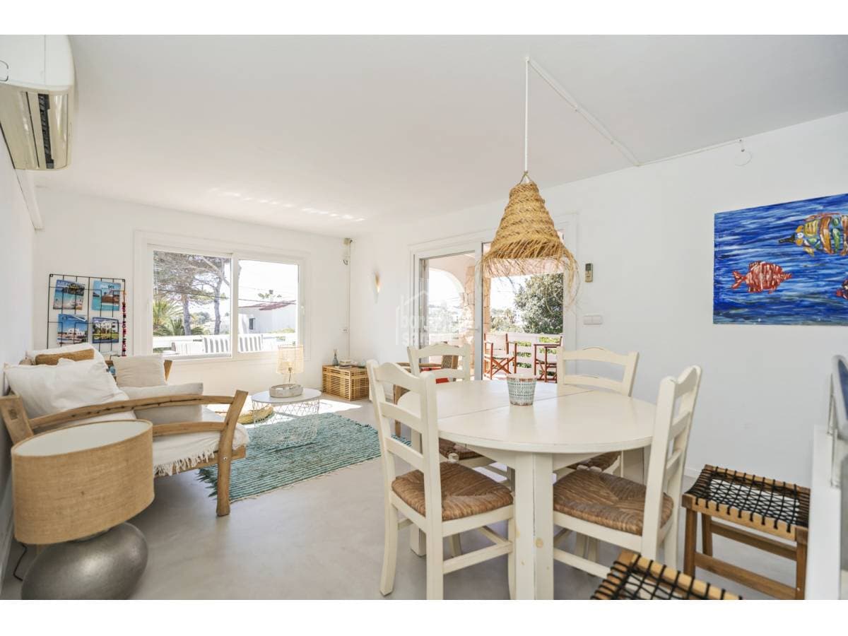 Just a short walk from the sandy beach of Punta Prima, this charming townhouse offers an excellent balance between Mediterranean lifestyle and investment potential. Arranged over two levels, the property offers approximately 118 m² of built area on a generous 500 m² plot. Renovated in 2020, the house features an elegant and timeless design, ready for immediate occupation. The exterior areas are designed for relaxed island living, with a private swimming pool and attractive sea views towards the iconic Isla del Aire lighthouse. Punta Prima is renowned for its turquoise waters and relaxed atmosphere, while also offering an excellent selection of restaurants, shops and everyday amenities within easy walking distance. An excellent opportunity to acquire a property in one of Menorca's most desirable coastal locations.