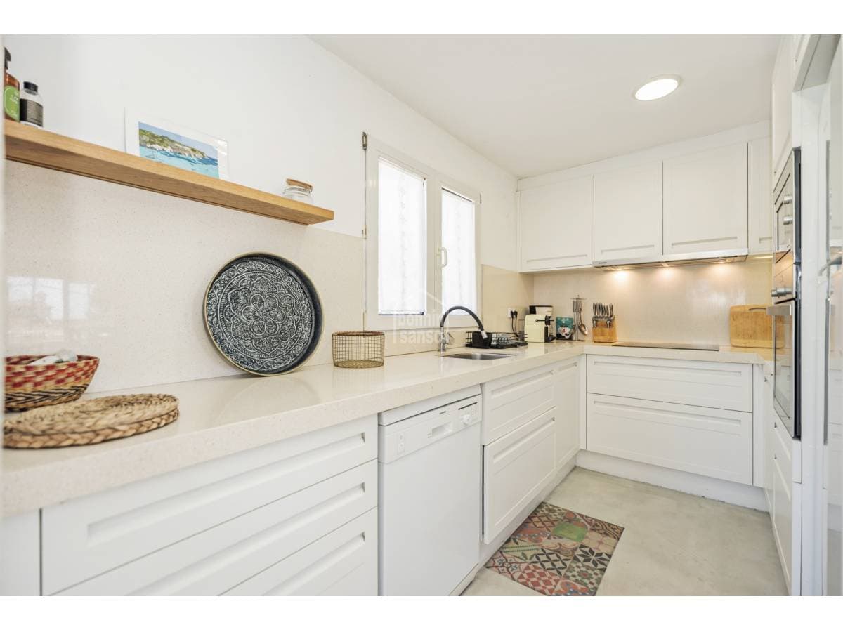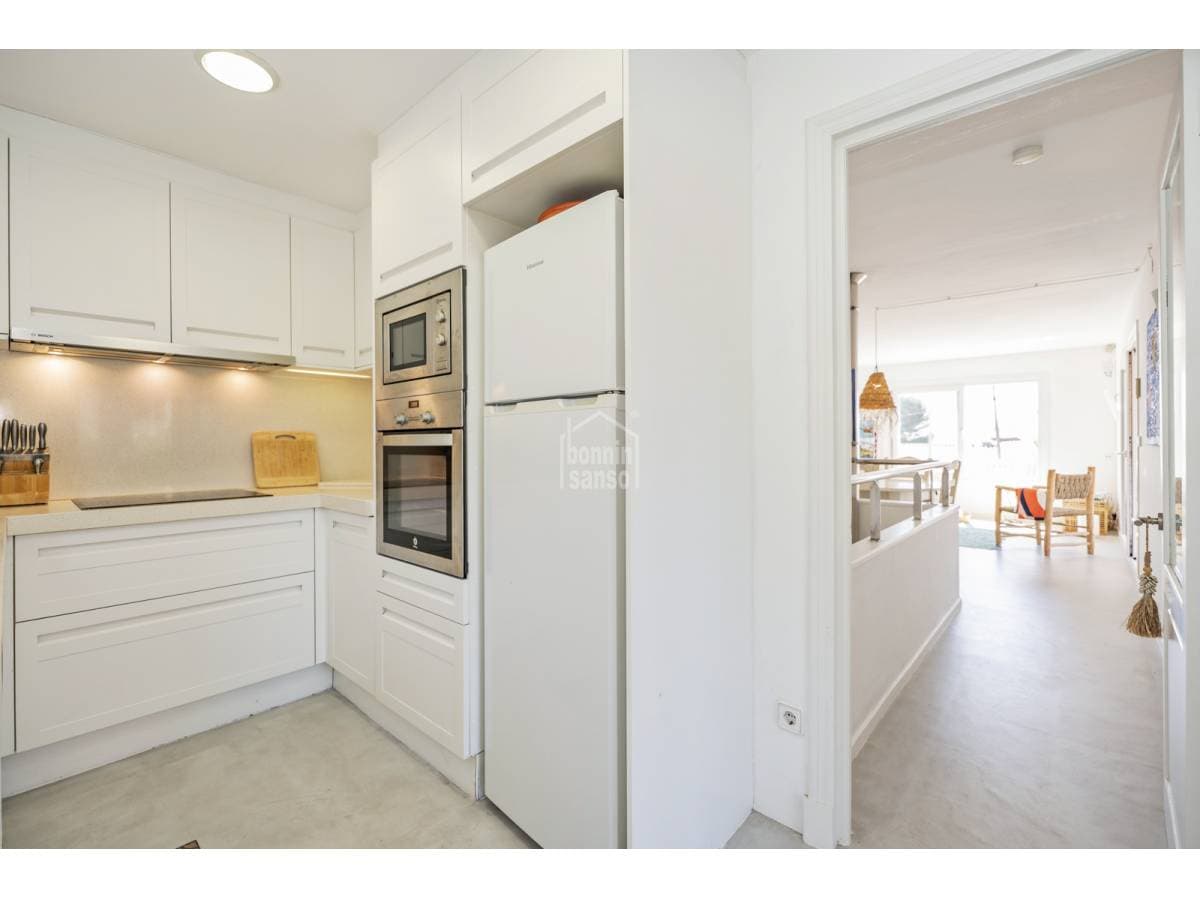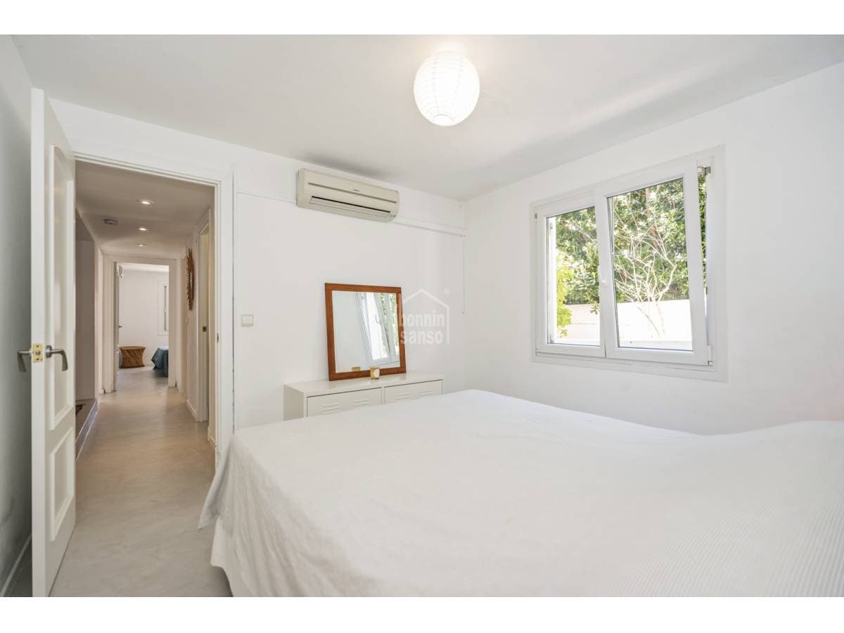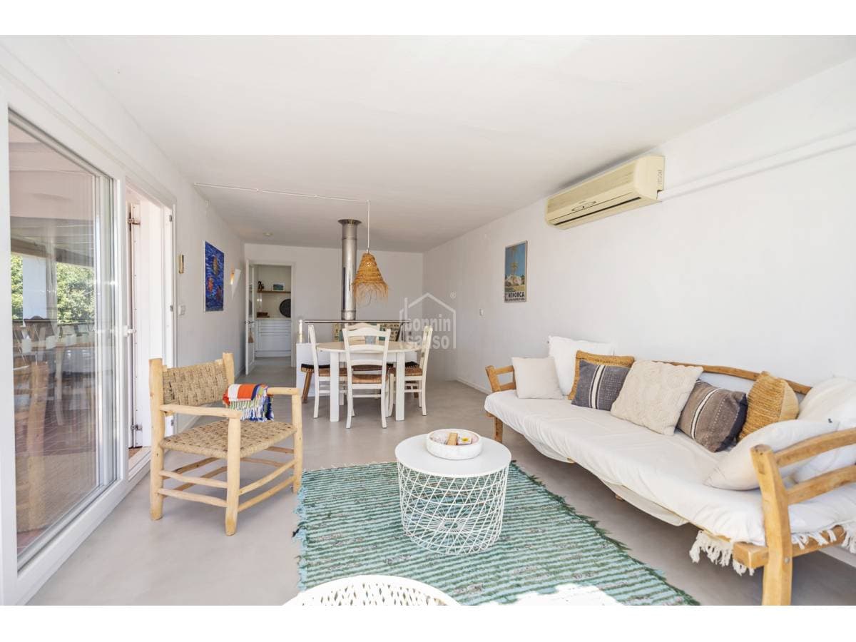 Just a short walk from the sandy beach of Punta Prima, this charming townhouse offers an excellent balance between Mediterranean lifestyle and investment potential. Arranged over two levels, the property offers approximately 118 m² of built area on a generous 500 m² plot. Renovated in 2020, the house features an elegant and timeless design, ready for immediate occupation. The exterior areas are designed for relaxed island living, with a private swimming pool and attractive sea views towards the iconic Isla del Aire lighthouse. Punta Prima is renowned for its turquoise waters and relaxed atmosphere, while also offering an excellent selection of restaurants, shops and everyday amenities within easy walking distance. An excellent opportunity to acquire a property in one of Menorca's most desirable coastal locations.