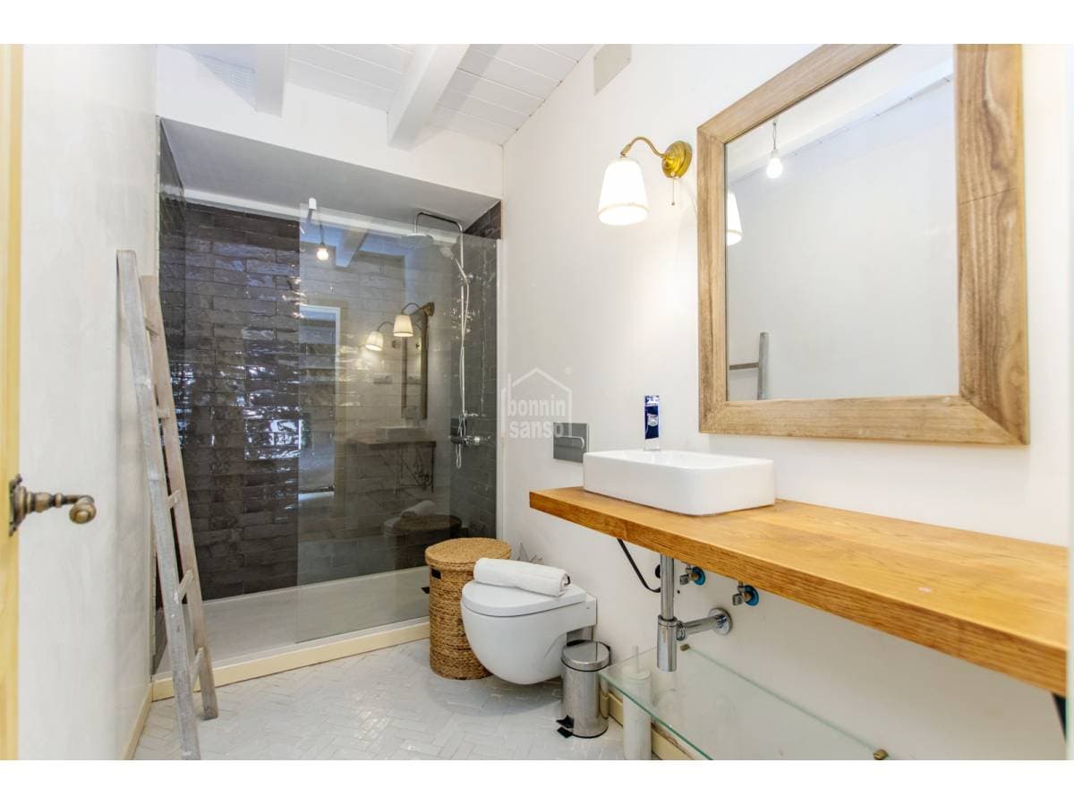 Mahon is full of hidden delights, and this property is undoubtedly one of them. A stylish home arranged over three floors, beautifully preserved and offering a seamless fusion of traditional character and contemporary comfort. There is so much to discover here — let's step inside. The elegant front door opens into an inviting entrance hall, leading through to a traditional, fully equipped kitchen with an adjoining dining area. A comfortable lounge enjoys access to a small private patio, while the space beneath the staircase has been cleverly utilised to accommodate a practical cloakroom. The layout is both functional and full of charm. On the first floor, there are two double bedrooms: one overlooking the street façade and the other facing the rear patio. Both are welcoming suite-style rooms, each with its own bathroom. The refurbishment was carried out with great care and attention, preserving the authenticity of the property while incorporating modern comforts such as double glazing and air conditioning. The attic level accommodates a third double bedroom and bathroom, creating a cosy and characterful retreat. This floor also reveals one of the home's standout features: a generous rooftop terrace, ideal for sun lovers and perfect for relaxing or enjoying balmy evenings in the very heart of Mahon.