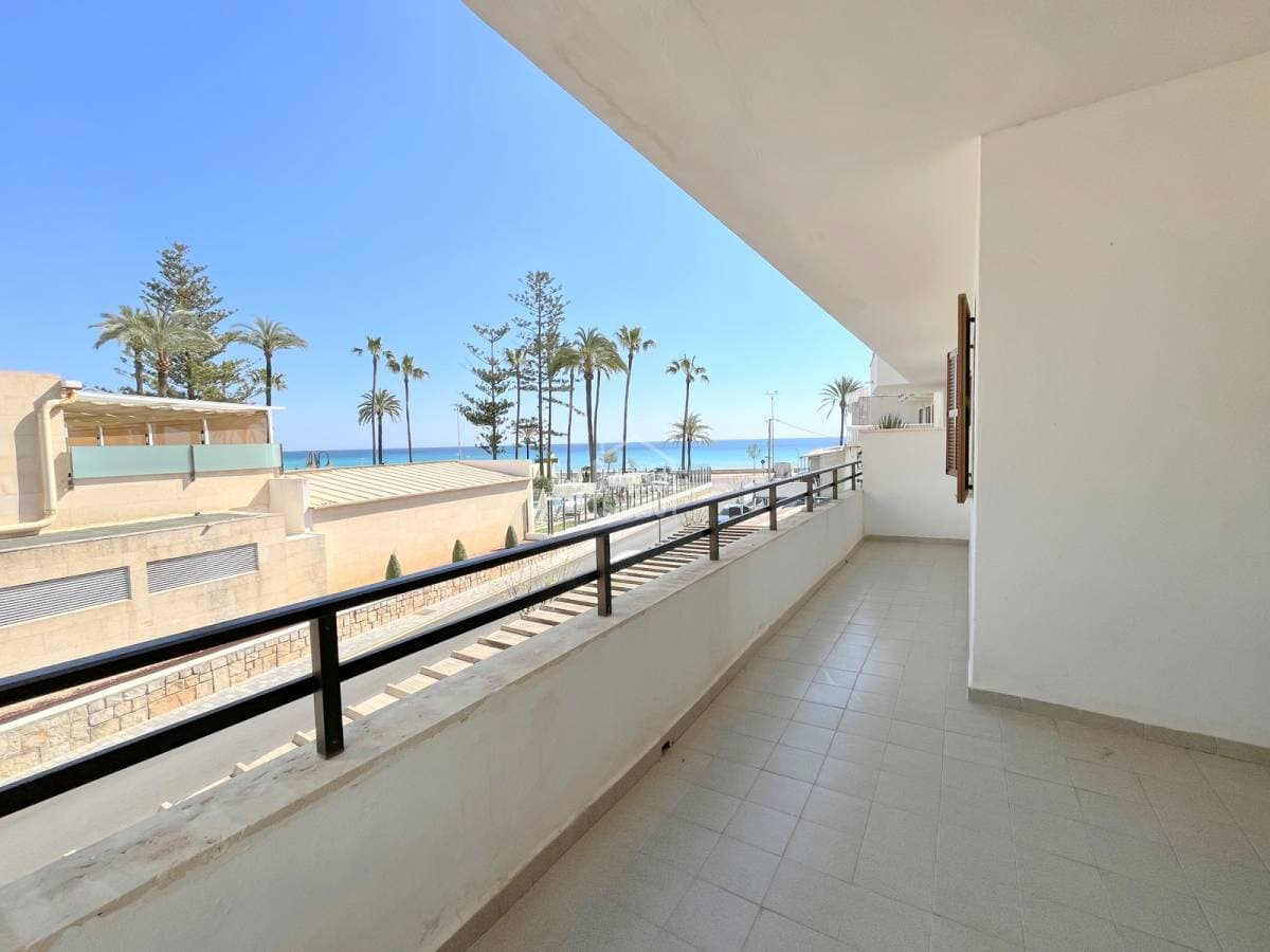 Enjoy the sea every day from this apartment located on the seafront, just a few steps from the Paseo del Mar and close to all amenities, restaurants and shops. The property has approx. 74 m² distributed in two spacious bedrooms, a bright living-dining room, separate kitchen, laundry room and two terraces of approx. 18 m². Main terrace with stunning sea views and east facing, ideal for enjoying the morning sun. Second terrace facing west, perfect for relaxing in the afternoon. The flat is in good condition and offers great potential to update it to your liking. Located in a small, well-maintained, quiet building without a lift. A unique opportunity to live by the sea and enjoy the Mediterranean breeze every day.
