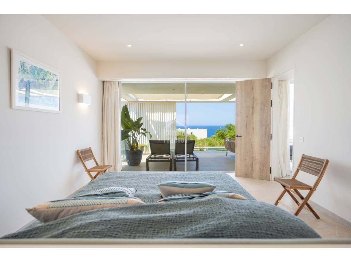 Set in a privileged location where architecture enhances the landscape, this modern villa redefines residential luxury with its clean-lined design and refined materials. Glass and Mediterranean light take centre stage. Thoughtfully oriented to maximise sea views, every room captures the endless blue horizon. The layout blends indoor and outdoor living in a seamless, sophisticated flow that embraces nature and space. With over 300 m² of built area across two levels, the property includes four spacious bedroom suites with private bathrooms, a guest cloakroom, utility area and an exceptional living space. The expansive lounge and designer kitchen open out to panoramic terraces, a spectacular pool with integrated jacuzzi, a solarium and Mediterranean-inspired gardens offering privacy, comfort and understated elegance. Every corner is designed to preserve privacy while maintaining a constant visual connection with the sea, filling the home with serenity and natural light throughout the day. This is not just a high-end residence — it's a statement of architectural intent for those who value design, exclusivity and setting. A secure investment in lifestyle, modernity and unmatched views.