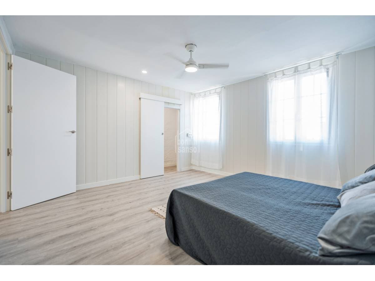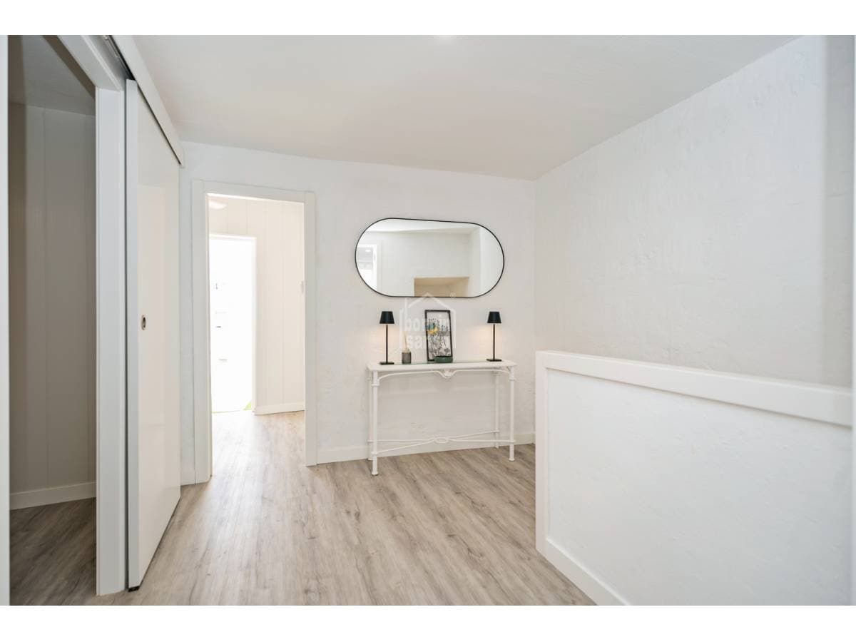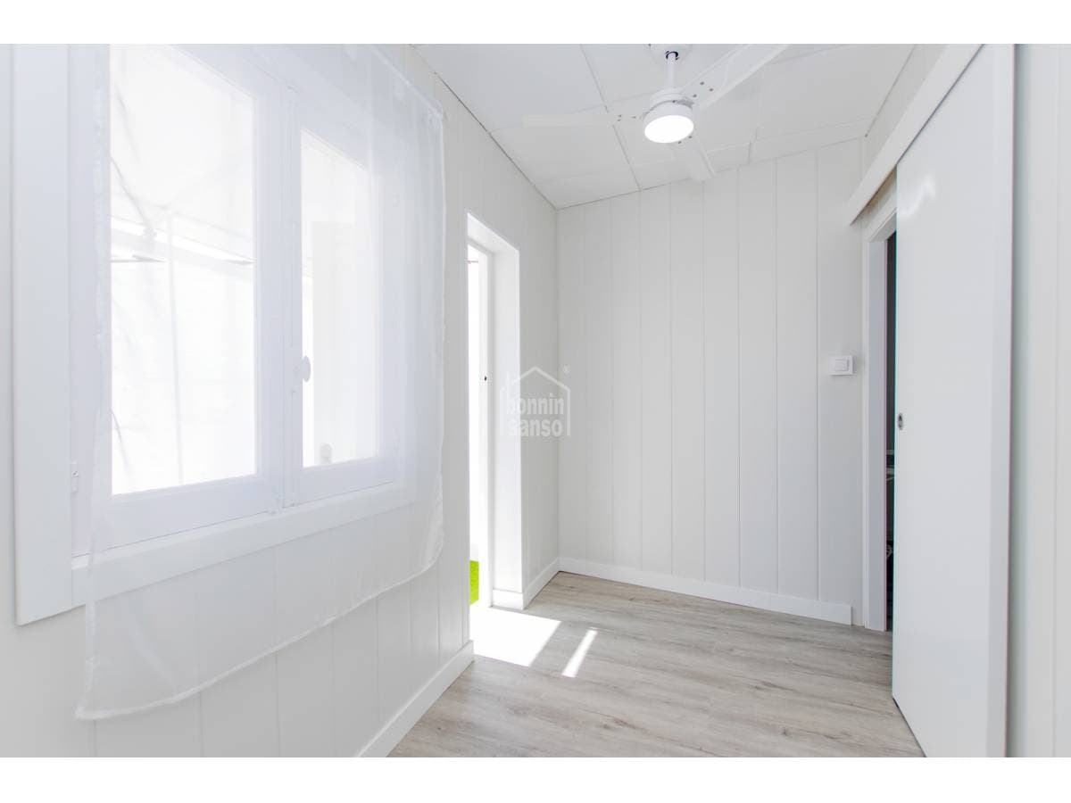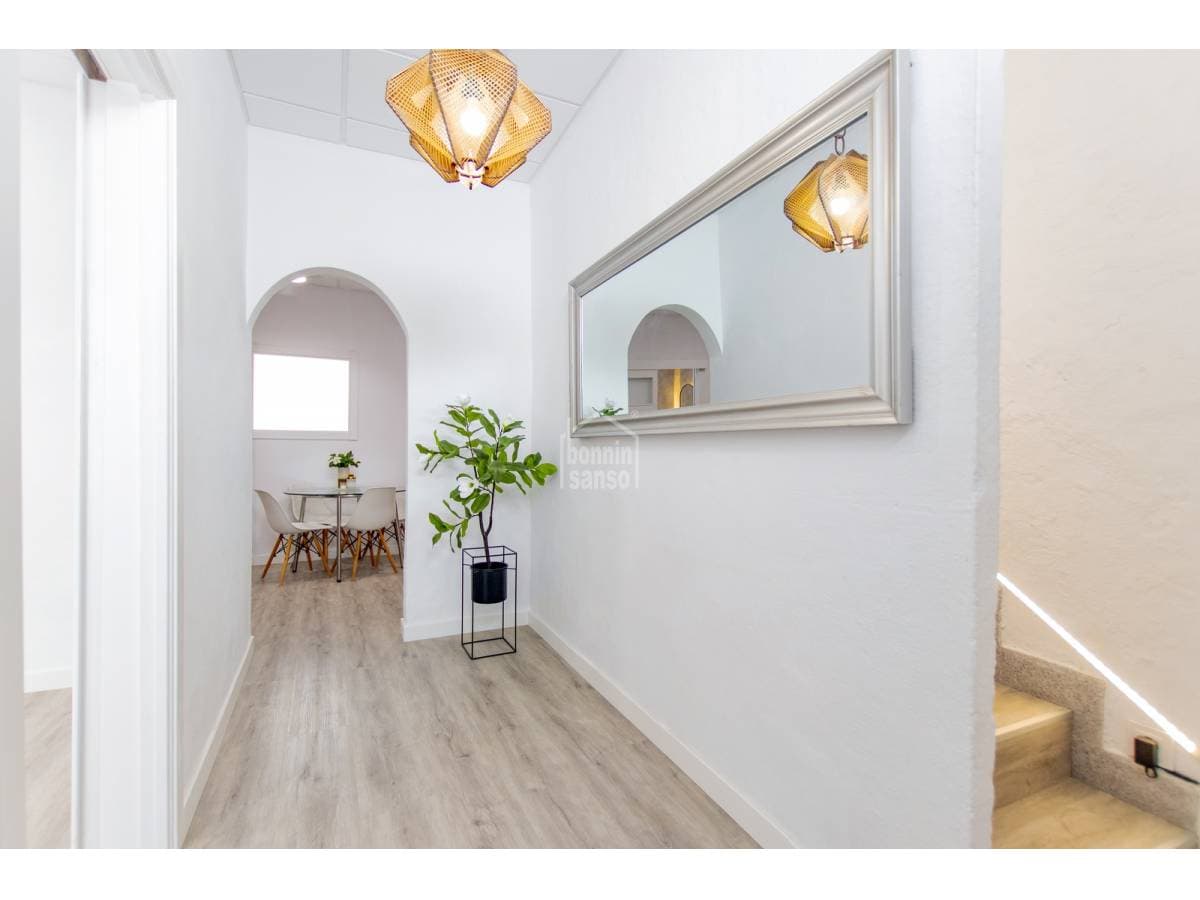 Charming townhouse situated on one of Mahón's most pleasant and peaceful streets, within easy walking distance of the town centre. The property is arranged over ground and first floors and also benefits from further development potential, subject to the necessary planning consents. The ground floor comprises a generous entrance hall, a kitchen with dining area, a bathroom, a courtyard with utility space, and a versatile room that may serve as either a sitting room or an additional bedroom, according to requirements. The first floor provides a double bedroom, a space currently arranged as a study or sitting room, and a single bedroom with access to a delightful private terrace, an inviting setting in which to enjoy the open air. Recently refurbished with care and quality materials, the house successfully combines the traditional character of Menorcan architecture with refined contemporary finishes. For further information or to arrange a viewing, please do not hesitate to contact us.