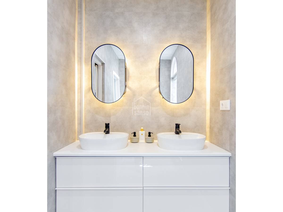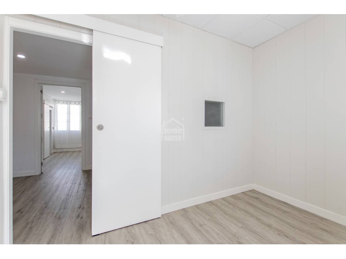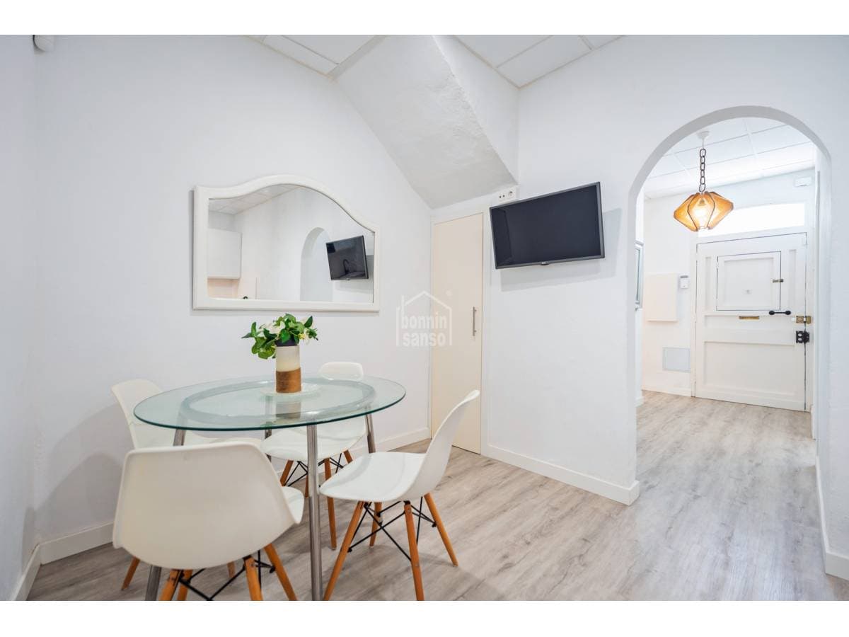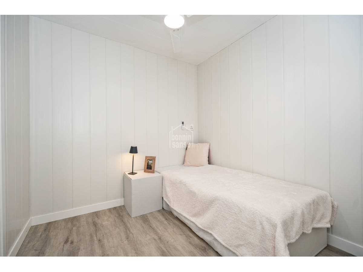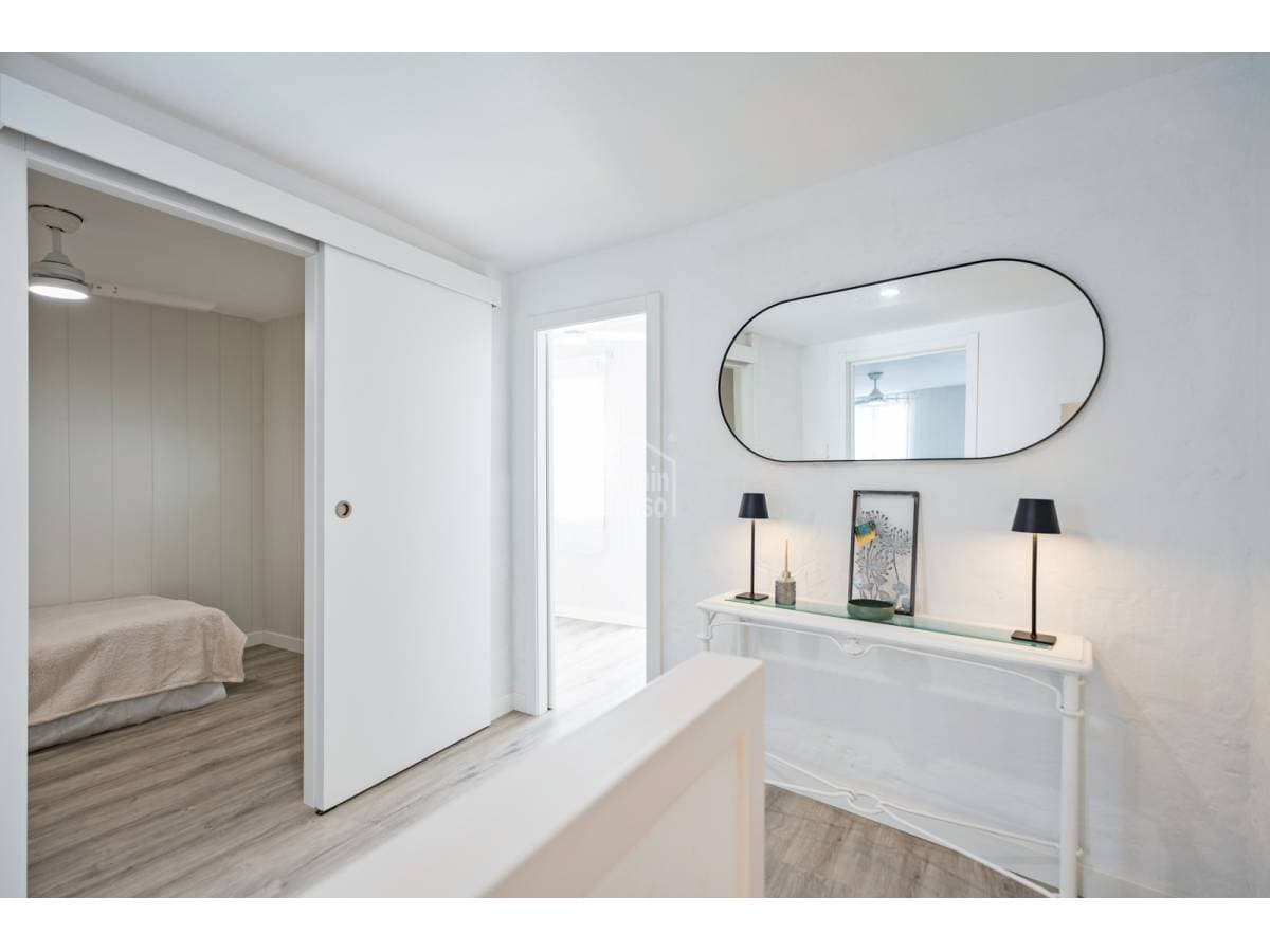 Charming townhouse situated on one of Mahón's most pleasant and peaceful streets, within easy walking distance of the town centre. The property is arranged over ground and first floors and also benefits from further development potential, subject to the necessary planning consents. The ground floor comprises a generous entrance hall, a kitchen with dining area, a bathroom, a courtyard with utility space, and a versatile room that may serve as either a sitting room or an additional bedroom, according to requirements. The first floor provides a double bedroom, a space currently arranged as a study or sitting room, and a single bedroom with access to a delightful private terrace, an inviting setting in which to enjoy the open air. Recently refurbished with care and quality materials, the house successfully combines the traditional character of Menorcan architecture with refined contemporary finishes. For further information or to arrange a viewing, please do not hesitate to contact us.