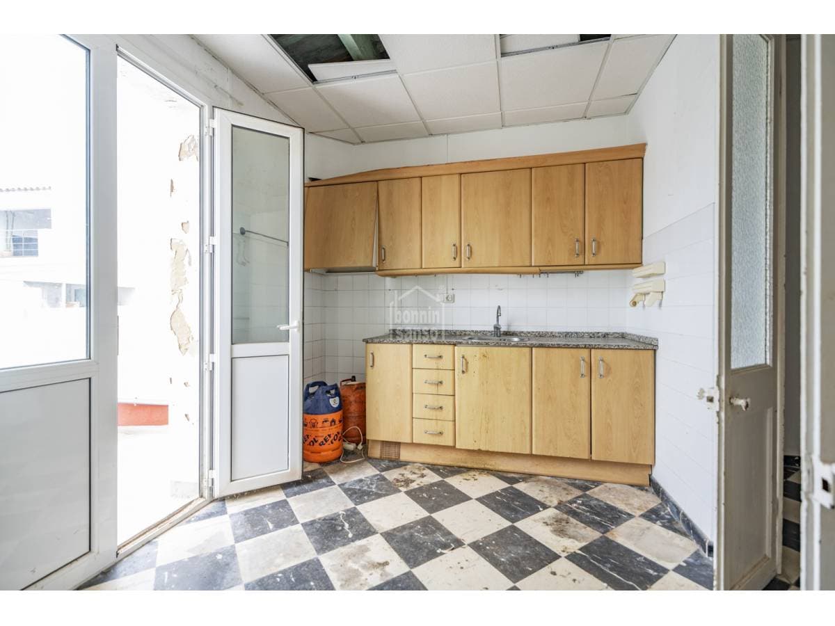First floor house in Mahón, set in a quiet yet well-connected area, within easy reach of all local amenities. The property features a practical and comfortable layout, with two bedrooms, a bathroom, a separate kitchen and a bright living-dining area filled with natural light. To the rear of the building there is a charming terrace with a utility area and storage room, providing a valuable outdoor extension for everyday use and relaxation. The sale includes a renovation project that proposes the creation of a mezzanine level, making the most of the generous ceiling heights and adding notable appeal in terms of space and architectural character. An excellent opportunity, equally suited as a permanent residence or as an investment in the heart of Maó.
